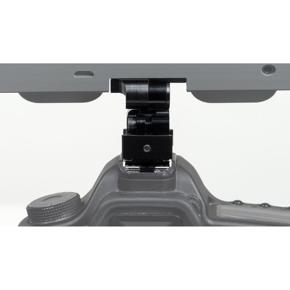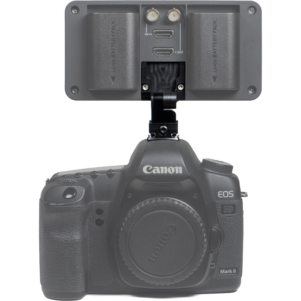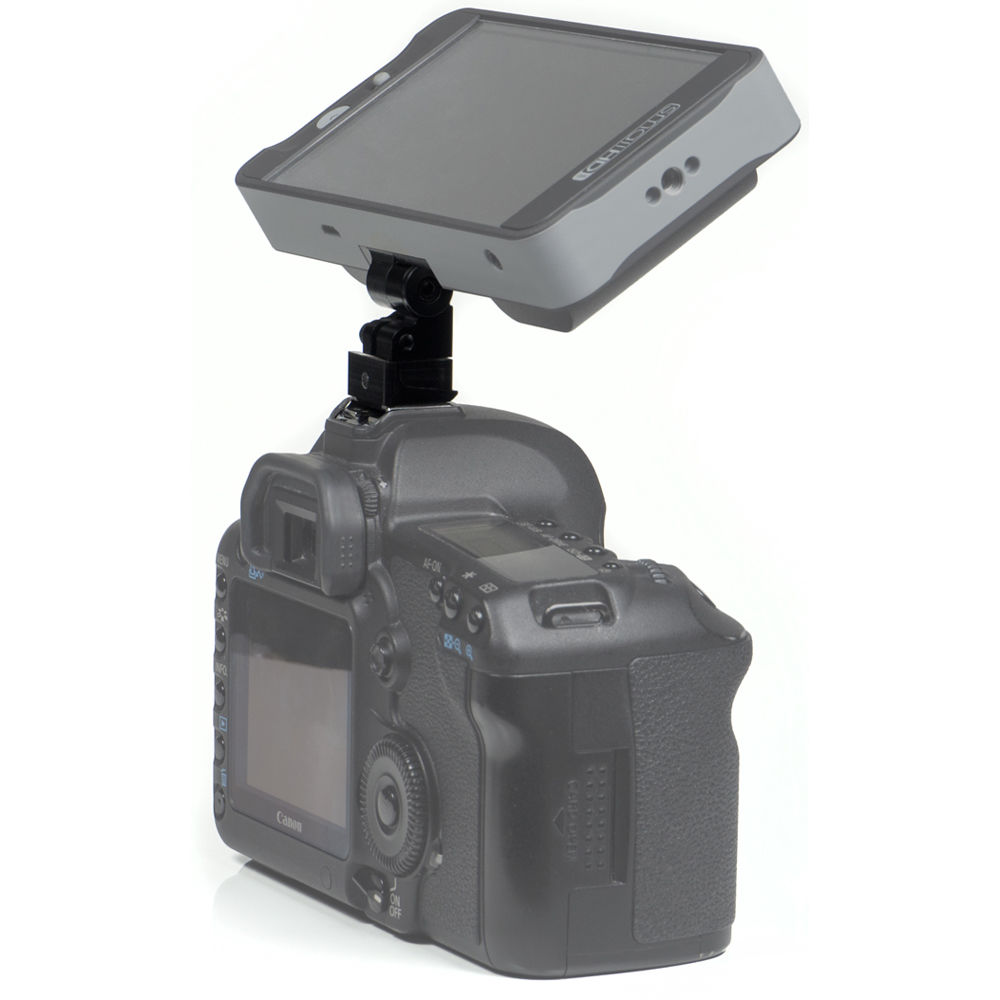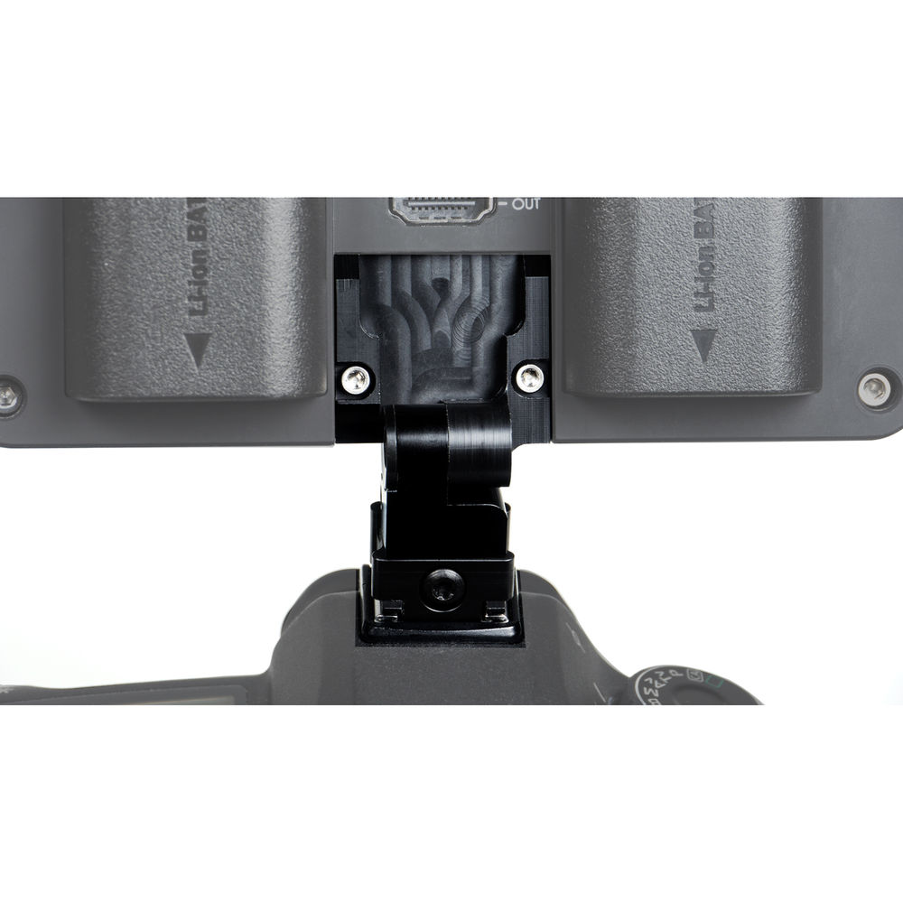 The Pan/Tilt Mount from SmallHD is a shoe-mount that enables pan and tilt adjustment of your camera-mounted 500 series monitor. Compact in design, the mount is designed to live on the back of the monitor, attaching via two screws to the area between two battery slots and underneath the video connectors. When not in use, the mount simply folds away into the back of the monitor for storage. Included with the mount is a tool to adjust pan/tilt fiction to the desired level.