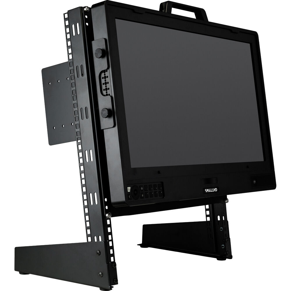 Mount your Cine 24 4K High-Bright Monitor onto a standard rack with this dedicated Rack Mount from SmallHD. The rack takes up 10 RU and enables you to mount a 24" Cine 24 4K monitor on a standard rack. The monitor mounts using 1/4"-20 captive thumbscrews on the bracket arms, and it can be detached from the rack without removing the entire assembly. Mounting hardware is included in the package and no additional tools are required.