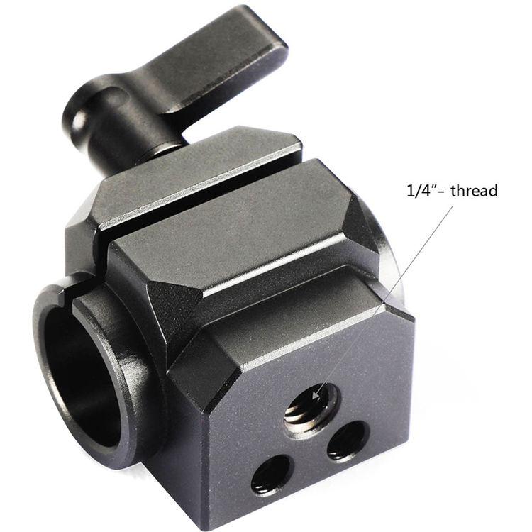 SmallRig 15mm Single Rod Clamp 1995 is locked into the front end of Top Handle 1955 and 1984 via two M4 screws. It also supports Magic Arm 2070B , Ball Head 2163 , etc. through the built-in 1/4''-20 threaded hole when working with a 15mm rod system, and quickly locks or releases the rod via a thumb knob.