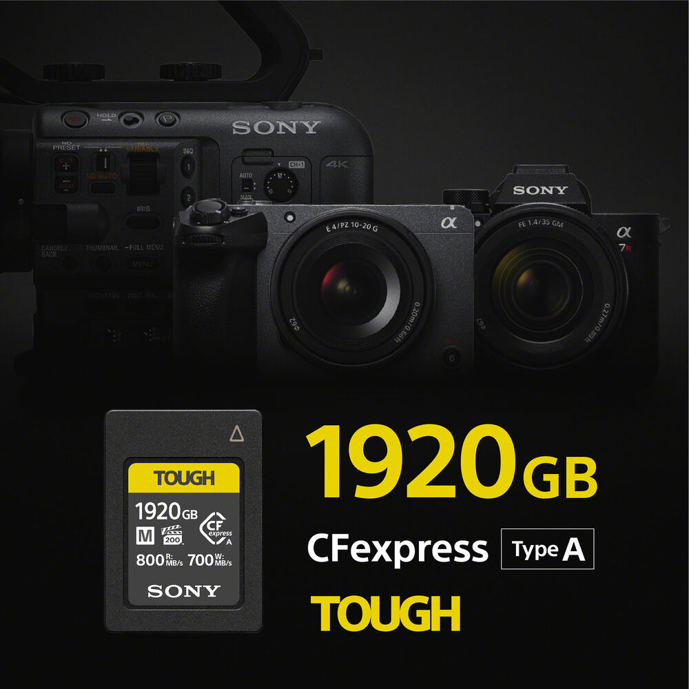 Offering both strength and speed, the 1920GB CFexpress Type A TOUGH Memory Card from Sony provides fast read speeds up to 800 MB/s, write speeds up to 700 MB/s and, thanks to the VPG 200 spec, write speeds are guaranteed to not drop below 200 MB/s. This quick performance benefits recording a variety of video resolutions, bit rates, and compressions, as well as high-resolution continuous raw photo shooting. Beyond its speed, this TOUGH memory card also has a reinforced physical design to withstand drops from up to 24.6' and has been rigidity tested to 150 N of force. It can perform in temperatures ranging from 14 to 158°F and is IP57 rated for dust and water resistance. Offering further protection, File Rescue recovery software can be downloaded for recovering lost or even accidentally deleted files and Media Scan Utility can be used to automatically scan CFexpress cards to inform you of the flash memory condition.