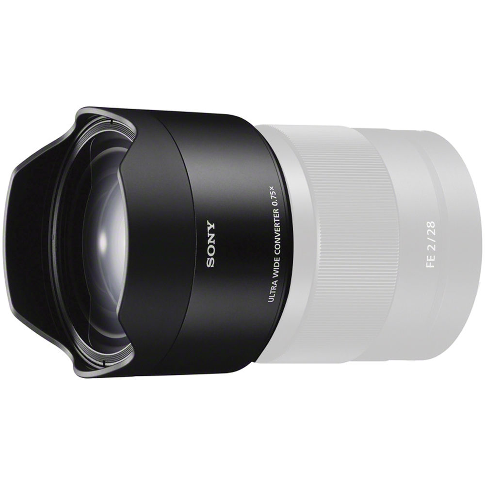 The 21mm Ultra-Wide Conversion Lens for FE 28mm f/2 Lens from Sony broadens the angle-of-view of the 28mm f/2 lens to 92º for an ultra wide focal length equivalence of 21mm when used with full-frame cameras. As this converter lens is uniquely compatible with the FE 28mm f/2 lens, it transmits EXIF data through the host lens to the camera. The optical design of the converter lens is comprised of 4 elements in 4 groups and when on the 28mm lens, it provides a maximum aperture of f/2.8 and a minimum manual focus distance of 7.9". When the lens is used with an APS-C E-Mount camera, the converter lens provides a 68° angle of view and a 31.5mm focal length equivalent. It is a compact addition to the 28mm lens with a bayonet mount and features a built-in petal-type lens hood.