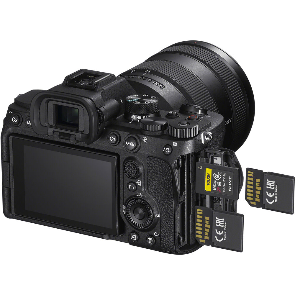 Newly developed 33MP Exmor R BSI CMOS full-frame sensor features a back-illuminated design that promotes high clarity, low noise, and vivid color rendering. This design benefits working in low-light conditions and works in conjunction with a broad sensitivity range of ISO 100-51200. The sensor's design also achieves an impressive dynamic range of approximately 15 stops and files can be recorded in raw, JPEG, or the 10-bit HEIF format.