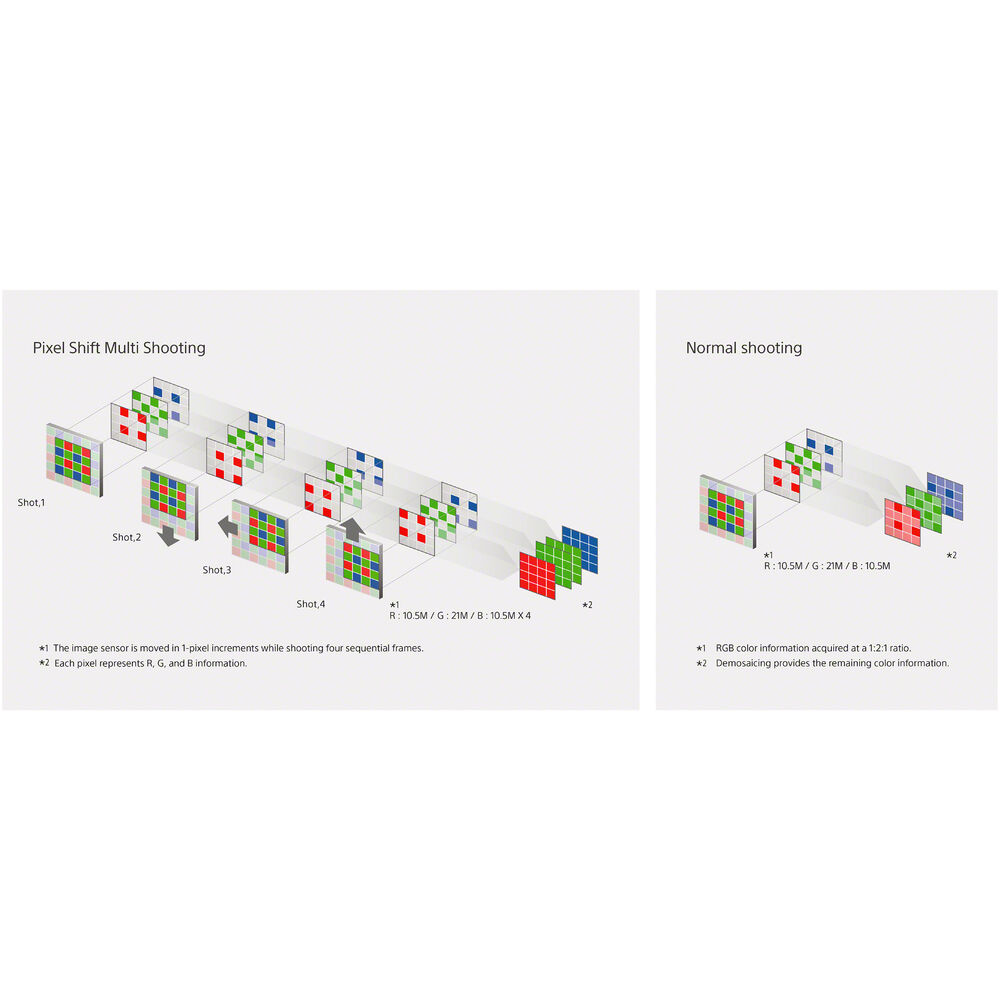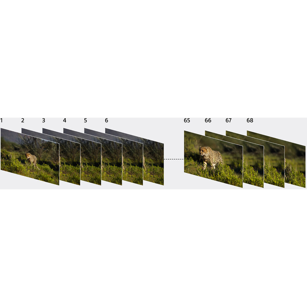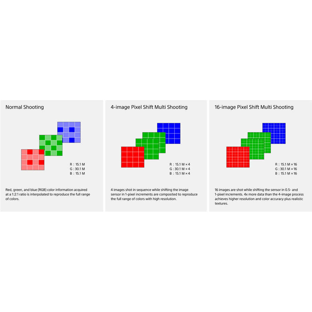 This unique compositing mode allows you to achieve even greater resolution than the 61MP sensor affords. Working in conjunction with the sensor-shift image stabilization, this mode shifts the sensor while making 16 consecutive exposures in order to acquire approximately 240.8MP of information for greater color accuracy and detail than possible with a single exposure, along with an impressive image size of 19,008 x 12,672-pixels. These files can then be merged together during post-production by using the Sony Imaging software suite.