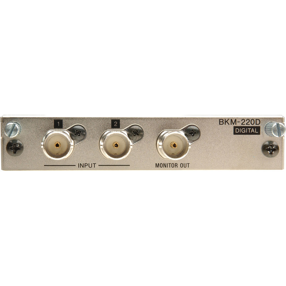 The Sony BKM-200D is an optional (standard definition) SDI input board for Sony LMD series of professional LCD monitors. When the board is installed, it provides 2 SDI BNC inputs and a single SDI output.