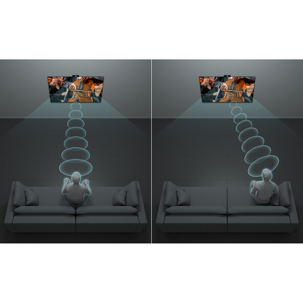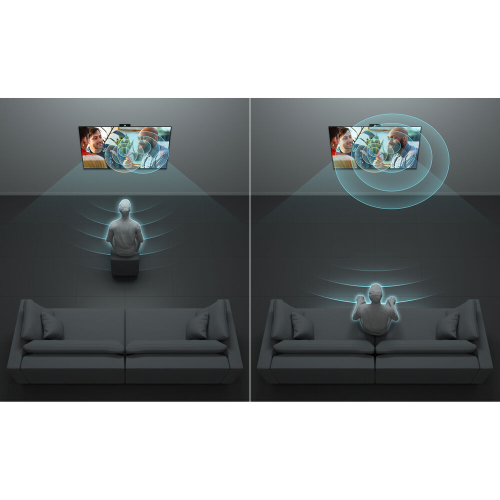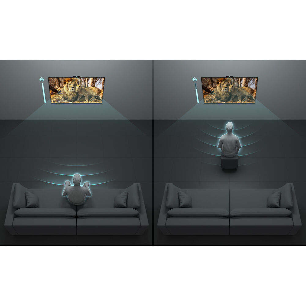 This feature detects where you're sitting in the room and automatically optimizes the TV's picture and audio to provide the best possible experience. If you're sitting close, the TV brightness and volume will be lowered, or raised if you're sitting farther away. When it comes to audio clarity, the left/right balance is adjusted so audio is directed towards you, and voice zoom is adjusted to make dialogue more understandable.