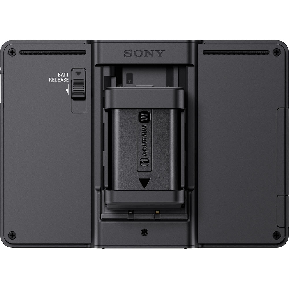 The monitor uses the same W, M and V batteries as cameras do, so you can use it for long periods of shooting without having to bring along different batteries. There's also an optional AC adaptor that's handy for long operating sessions without batteries. Various optional power sources: 1. AC adaptor AC-PW10AM / 2. NP-FW50 / 3. NP-FM500H / 4. NP-FV50 / 5. NP-FV70 / 6. NP-FV100A