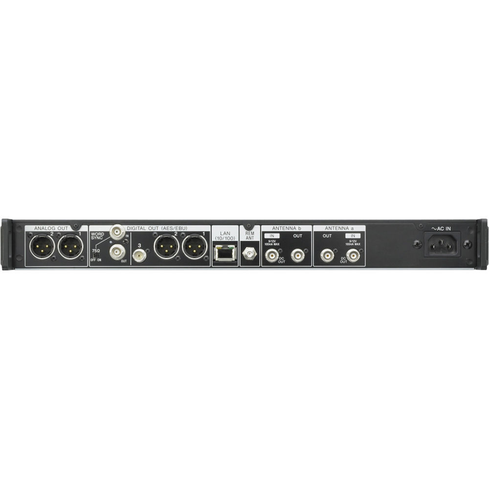 The DWR-R01D/30 Dual Channel Diversity Receiver from Sony is designed to work with DWL wireless systems. It is capable of receiving 48 kHz/24-bit audio via true diversity and features two XLR analog outputs as well as 2 AES/EBU digital outputs via XLR. Each channel features its own OLED display and is capable of controlling the connected transmitter. The clear and active channel scan is designed for easy setup by scanning available frequencies and automatically tuning the receiver to them. The DWR-R01D/30 can be controlled remotely via available remote control software for PC.