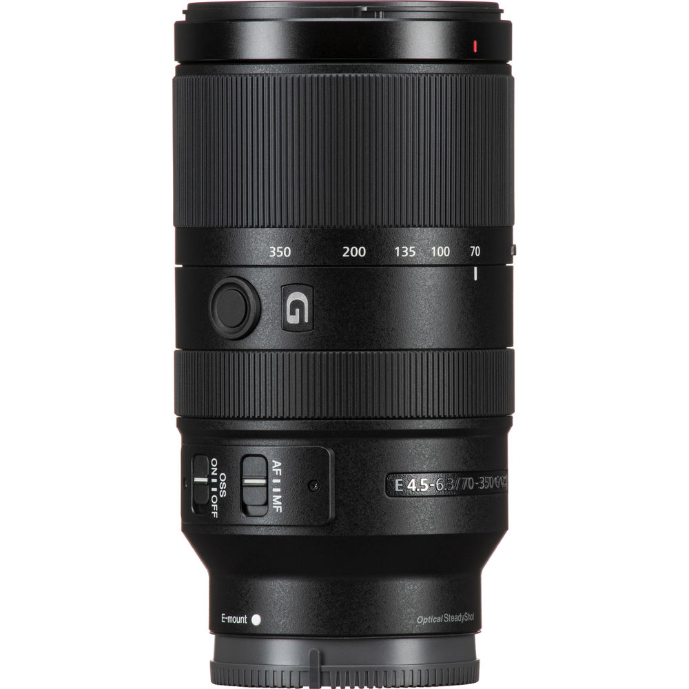 Covering a useful range of telephoto focal lengths, the E 70-350mm f/4.5-6.3 G OSS from Sony is a 105-525mm-equivalent zoom for APS-C-format E-mount cameras. The long reach is suitable for sports, wildlife, and landscape shooting, and is benefitted by Optical SteadyShot image stabilization to minimize the appearance of camera shake for sharper handheld shooting.