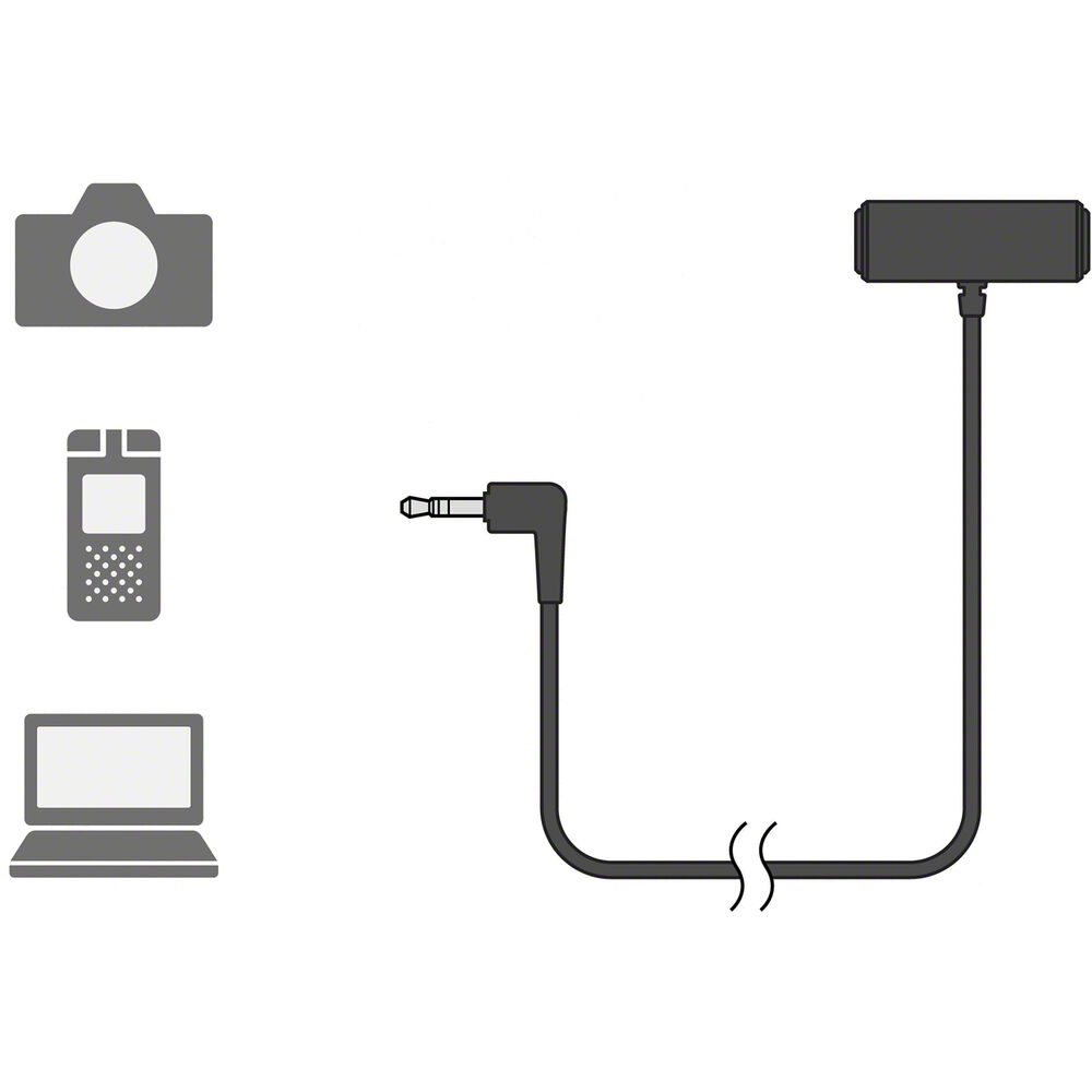 Designed for vlogging, YouTube videos, and content creation, the black Sony ECM-LV1 is a compact stereo lavalier microphone with a 3.3' cable and 3.5mm TRS connector for use with cameras and wireless transmitters—including the Sony ECM-W2BT Camera-Mount Bluetooth Wireless system. The lav features two omnidirectional capsules that each pick up sound in a 360° radius, resulting in stereo audio capture.