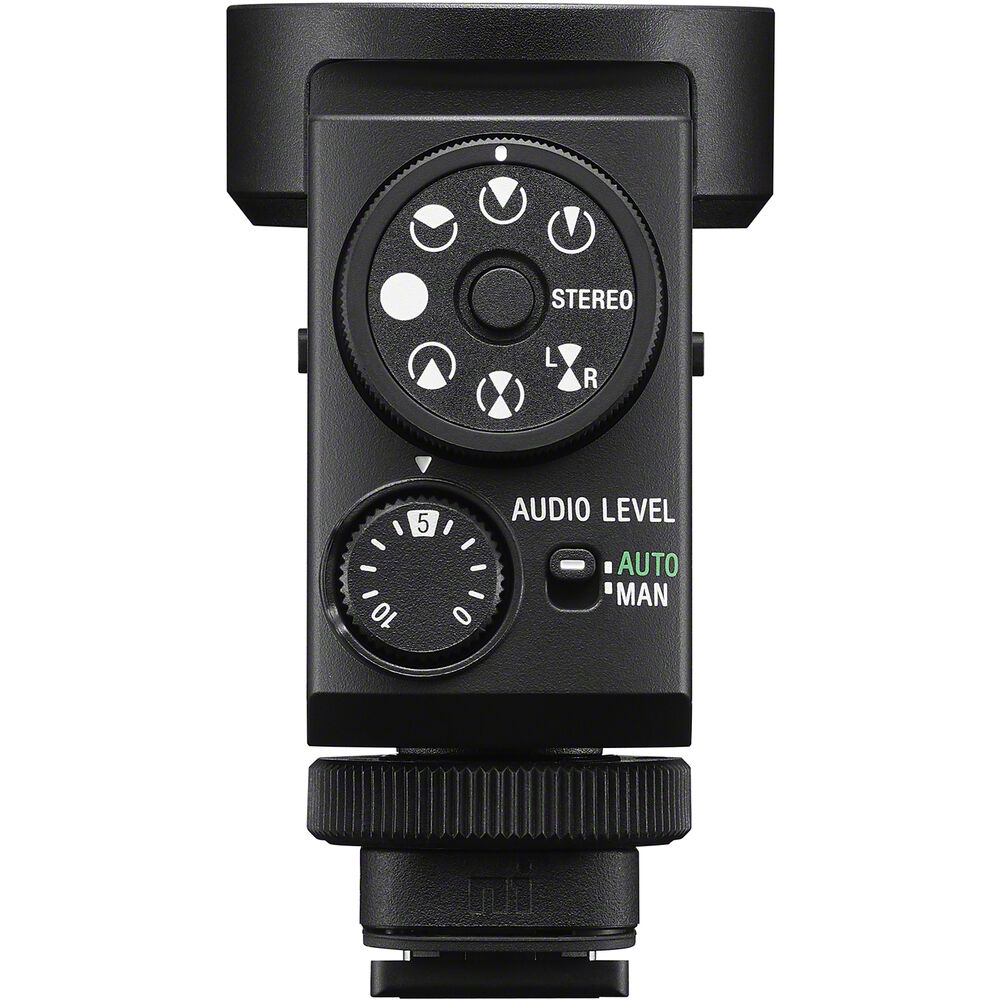 Using an onboard dial control, choose between eight different recording modes, including stereo, to suit different recording scenarios. Because the embedded condensers are laid out in a diamond orientation, the ECM-M1 can isolate the left, right, rear, or front audio sources and record separate channels simultaneously. Selectable modes include superdirectional, unidirectional, omnidirectional, superdirectional (rear), superdirectional (front and rear), super directional (front and rear separate), stereo, and ultra-directional.