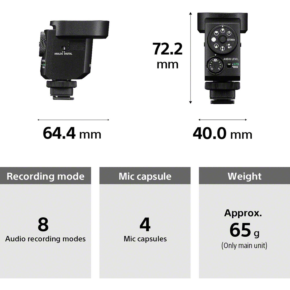 Featuring an even more compact form factor than its predecessors and four diamond-patterned capsules, the Sony ECM-M1 is a camera-mount digital shotgun microphone designed for creators using Sony cameras equipped with the Multi Interface Shoe needing to switch between interview shooting and social media content all in one device. Internal digital signal processing and advanced beamforming render clear recordings with the ability to toggle noise-cut and low-cut filters. Superdirectional pickup pattern with both front and rear pickup has eight selectable modes for the ultimate recording flexibility.