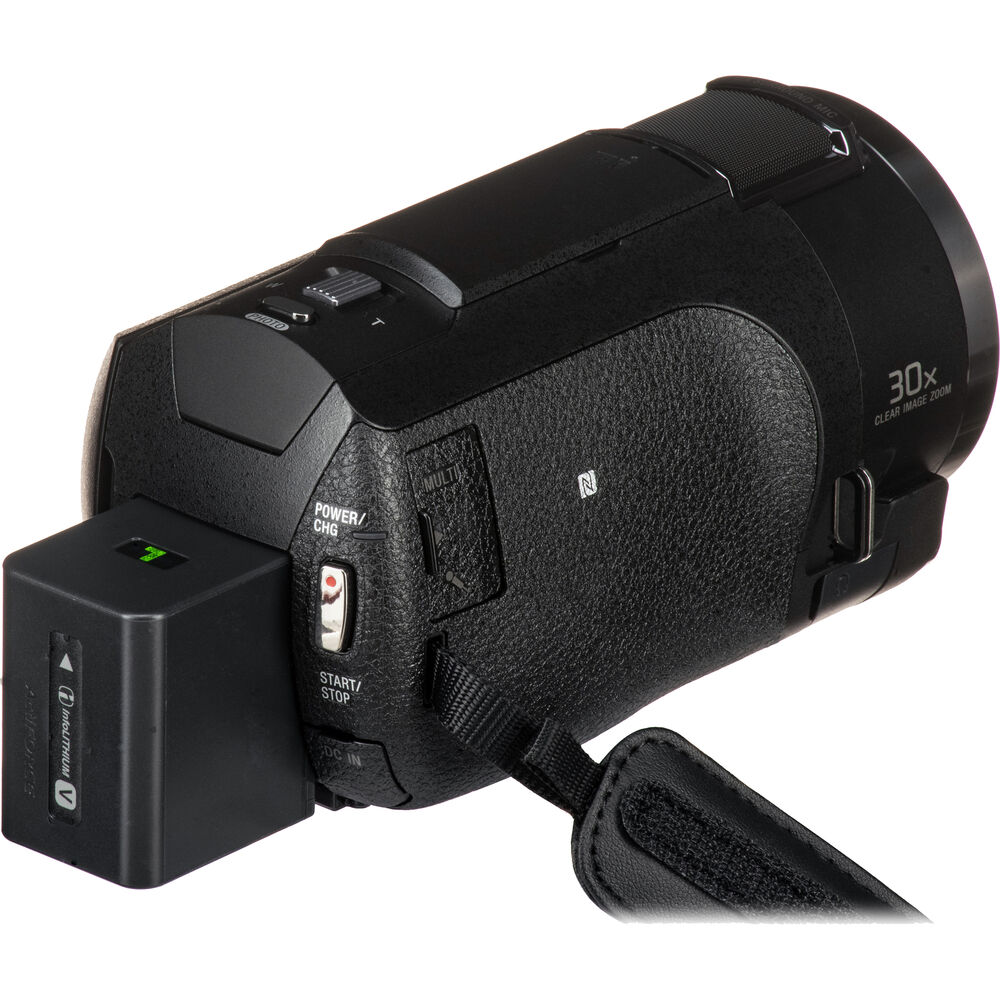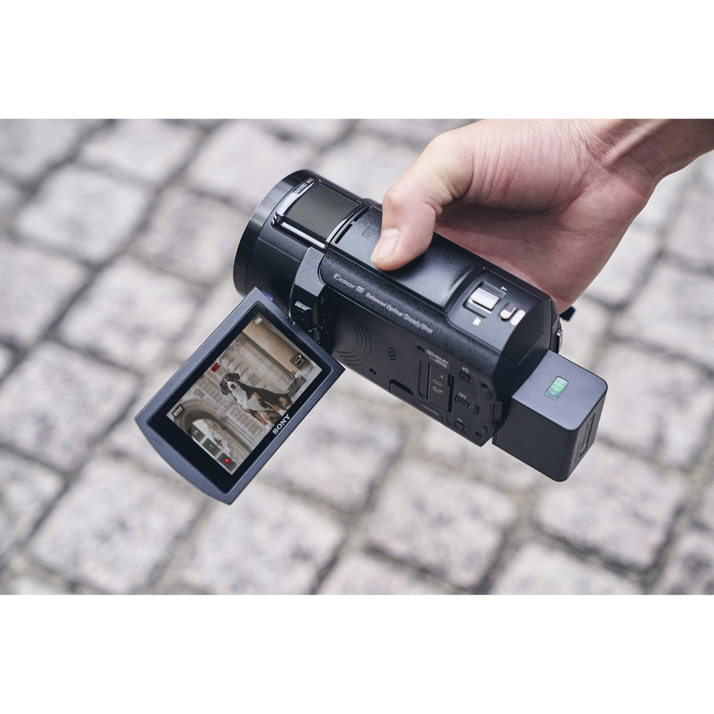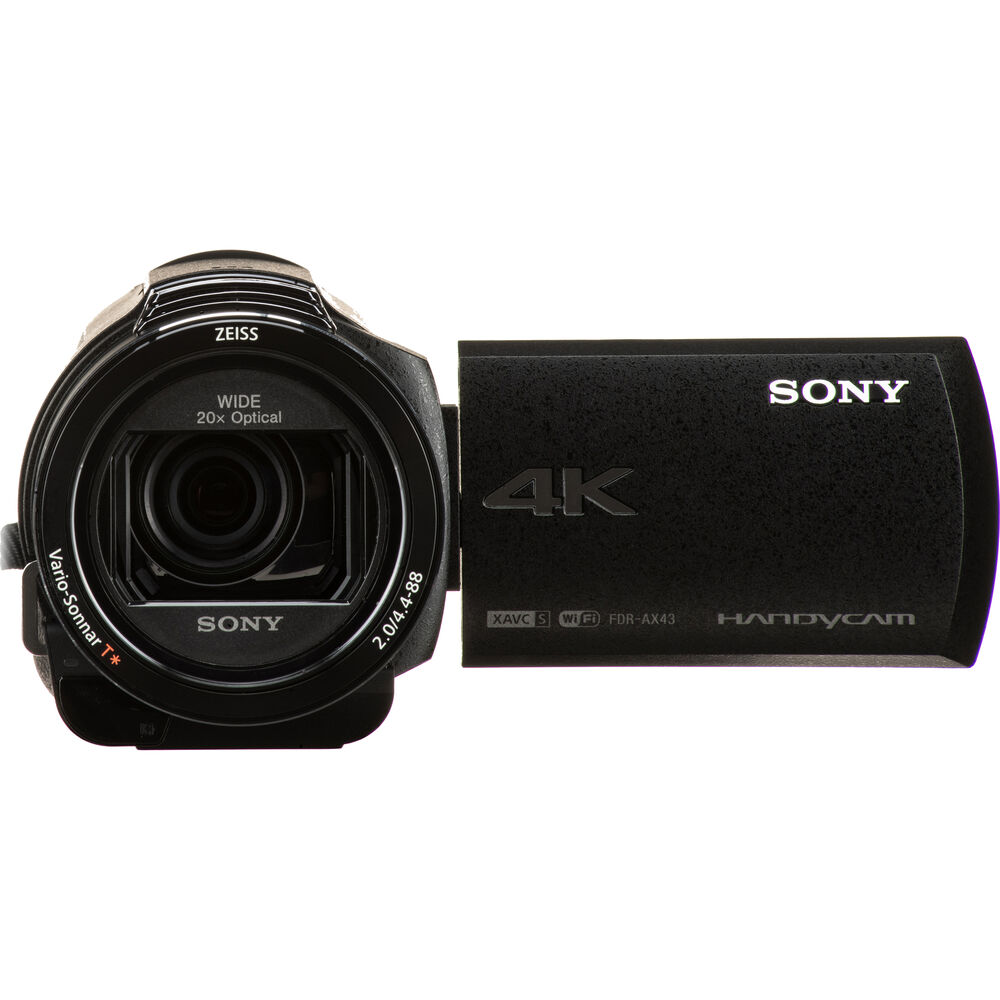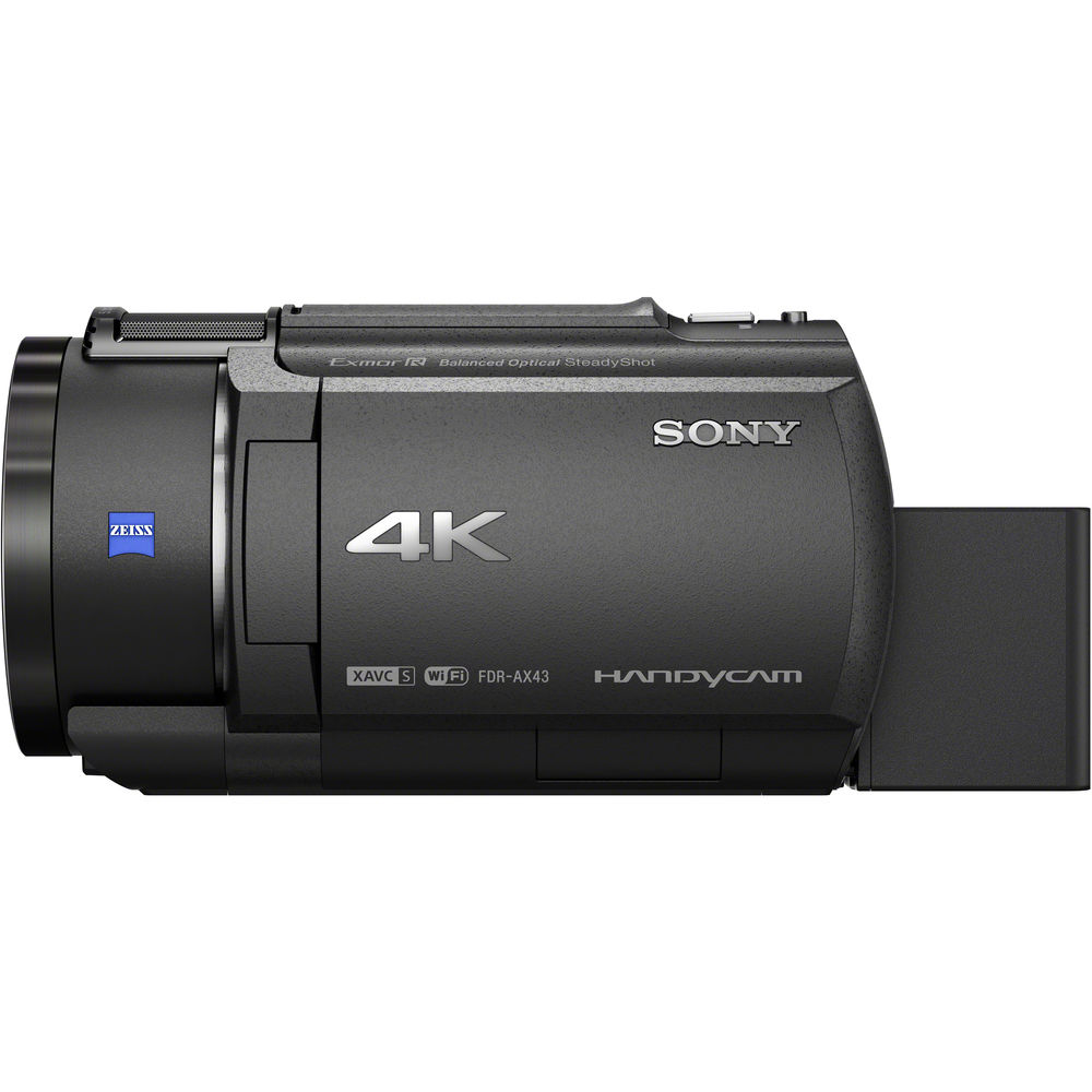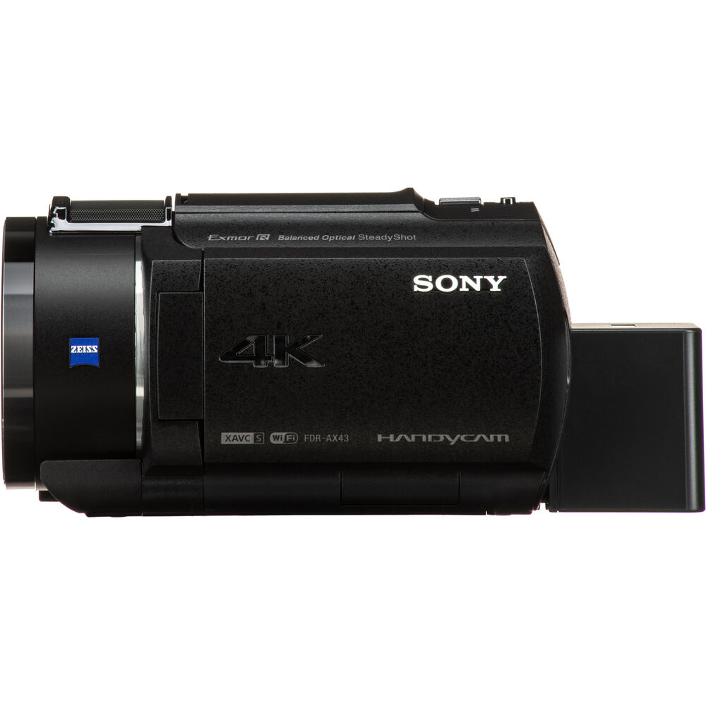 Capture ultrasmooth video on the go with the FDR-AX43A UHD 4K Handycam from Sony. This compact camcorder features a built-in gimbal with Balanced Optical SteadyShot image stabilization and a low-light Exmor R CMOS image sensor to produce crisp, high-quality UHD 4K video or 16.6MP still photos. Record up to UHD 4K video at 24 or 30 fps using Sony's XAVC S codec at rates up to 100 Mb/s or up to 50 Mb/s 1080p HD video. Fast, intelligent autofocus tracks your subjects while keeping them sharp, and the ZEISS Vario-Sonnar T zoom lens features a 20x optical/30x digital zoom in 4K and up to 250x digital zoom in HD.
