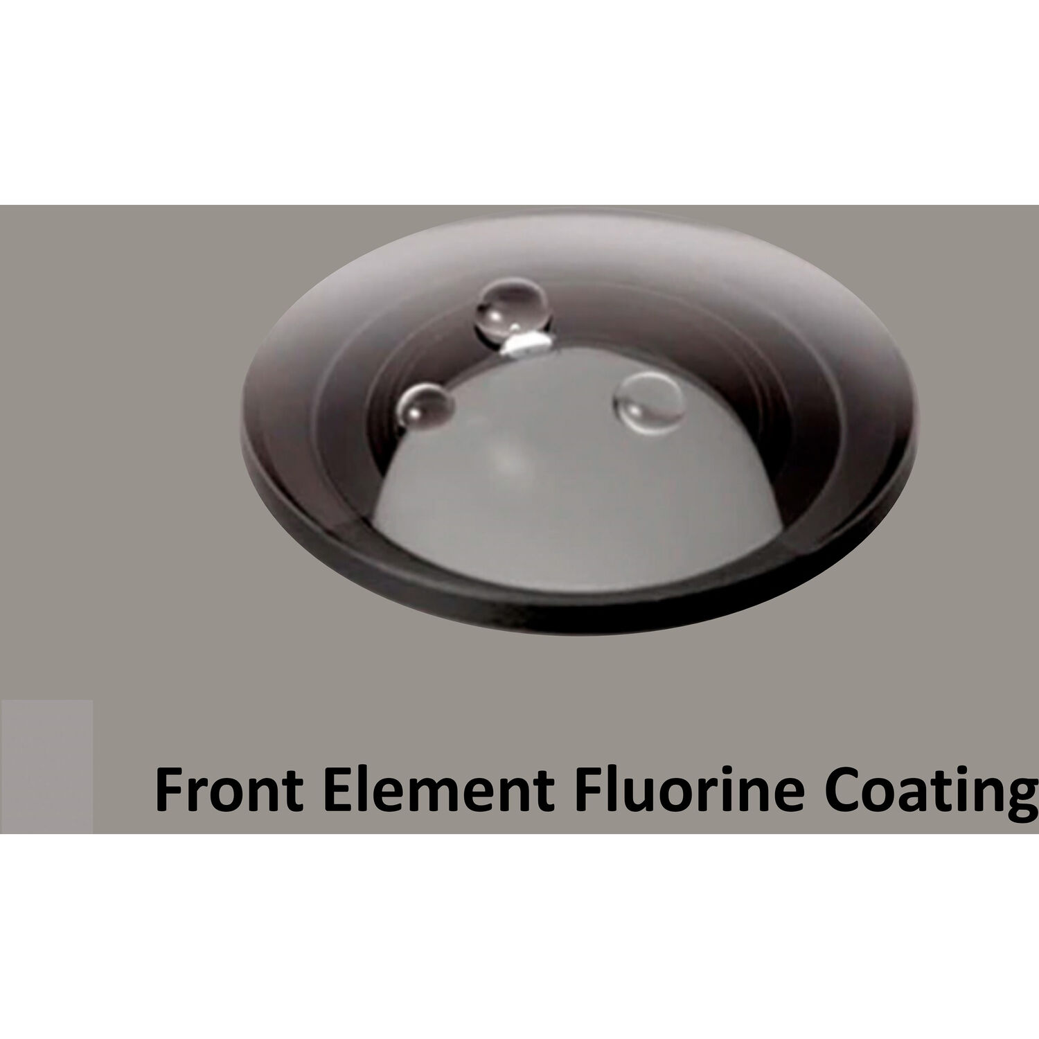 - Fluorine-coated front element resists dust, moisture, and fingerprints and is easy to clean.