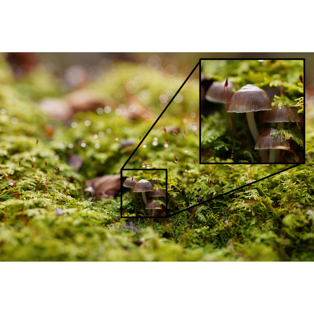 - A close minimum focusing distance, maximum magnification of 0.17x, and bright f/1.2 aperture help create shallow depth of field imagery with a strong close-up subject and a soft background.