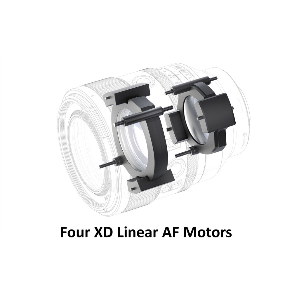 Four XD Linear Motors provide quick, quiet, and precise autofocus and subject tracking performance. This design also contributes to more natural, intuitive Linear Response manual focus control and an AF/MF switch is located on the lens barrel for tactile control over this setting.