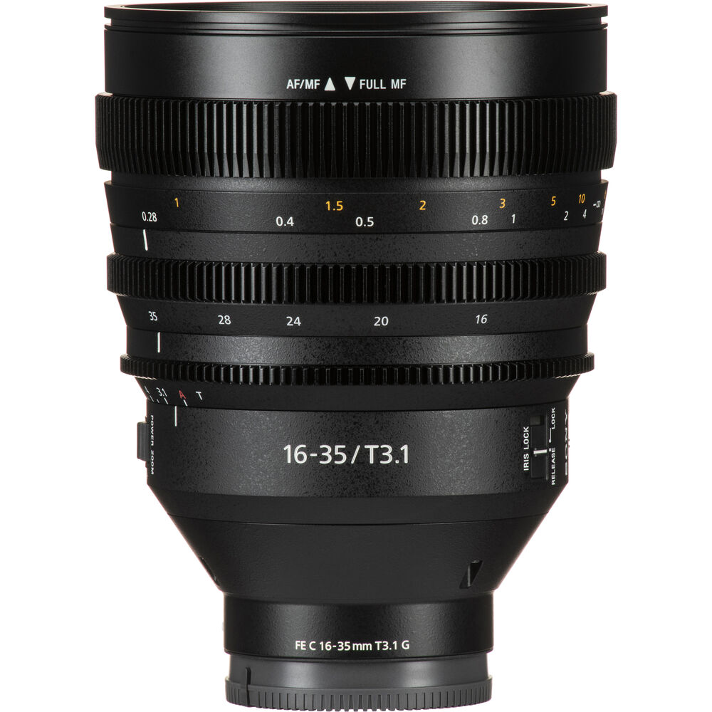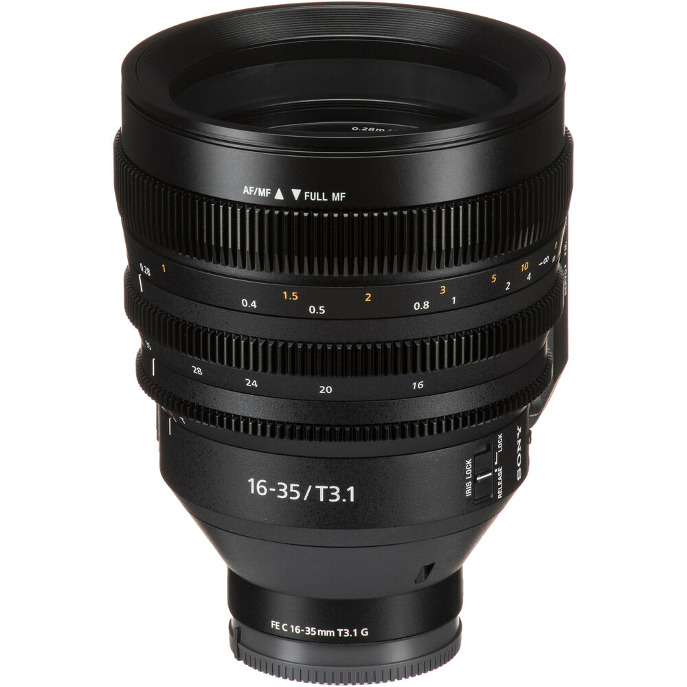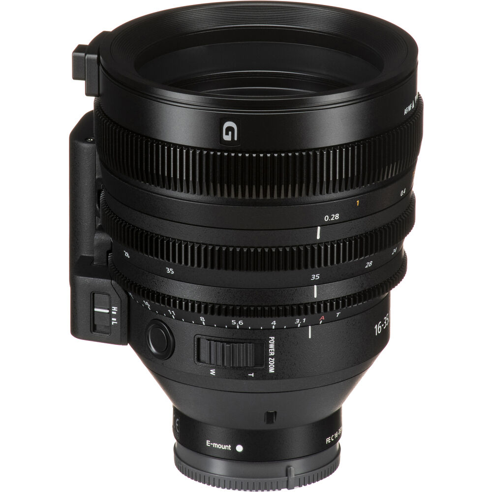 If you're looking for a fast and flexible wide-angle cine zoom for your full-frame cinema camera, the flagship FE C 16-35mm T3.1 G E-Mount Lens from Sony features a constant T3.1 aperture with consistent performance throughout its 16 to 35mm zoom range and provides high-quality imagery in low-light conditions. You can operate the zoom manually or use the detachable servo unit to help create dramatic fast or slow zooms with ease. It can also be controlled by a compatible camera's handle or an optional external grip zoom. The lens's constant T3.1 maximum aperture throughout the zoom range means consistent exposure as you change focal lengths in a scene, so you don't have to re-light just to get enough exposure when zooming in.