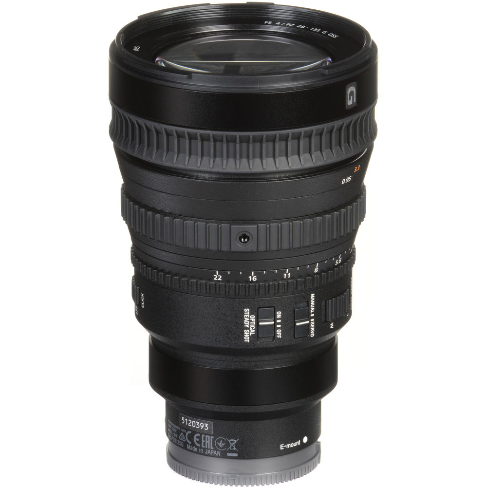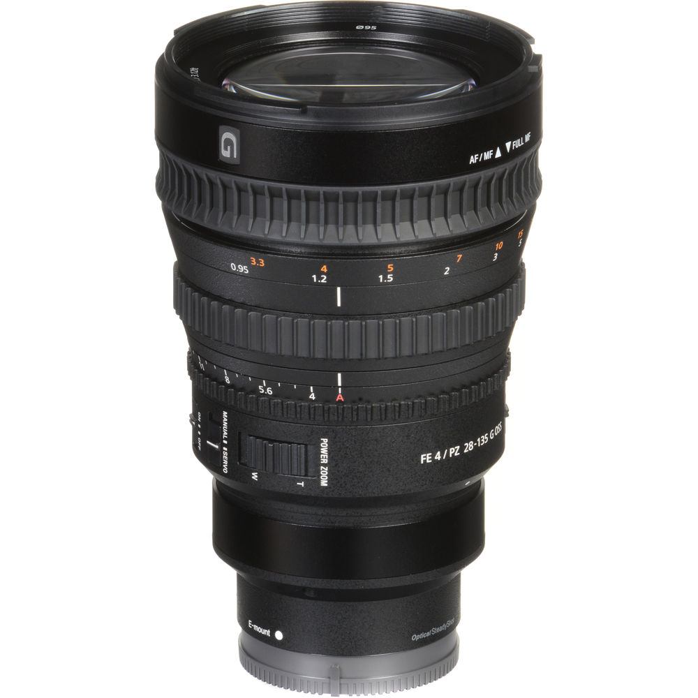 Designed to satisfy 4K production requirements, the Sony FE PZ 28-135mm f/4 G OSS Lens is a wide-ranging zoom lens that covers wide-angle to telephoto perspectives while adding many features for your full-frame, APS-C, or E-mount camcorder or still photography camera system. The lens features a powered zoom control with a variable speed and zoom rotation direction reversal capability. Powering the zoom function is an SSM (Super Sonic wave Motor) drive that allows precision and quiet operation. Focus noise is also minimized through weight reduction of the focus element group and use of a linear motor. Iris function is also designed to be smooth and silent for cinematography demands.