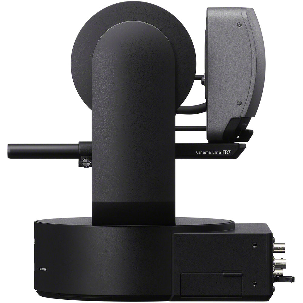 Capture cinematic, full-frame footage in PTZ form for broadcast use, reality shows, houses of worship, and live events and sports with the black FR7 Cinema Line PTZ Camera from Sony. This versatile camera features the unique ability to use interchangeable Sony E-mount lenses and is currently compatible with up to 70 E-mount lenses ranging from 12 to 1200mm. The large image sensor provides 15+ stops of dynamic range, captures up to UHD 4K120 video, offers live streaming, supports S-Cinetone, Cine EI, and MLUT looks for matching select Sony cameras, and enables you to create shallow depth-of-field bokeh effects.