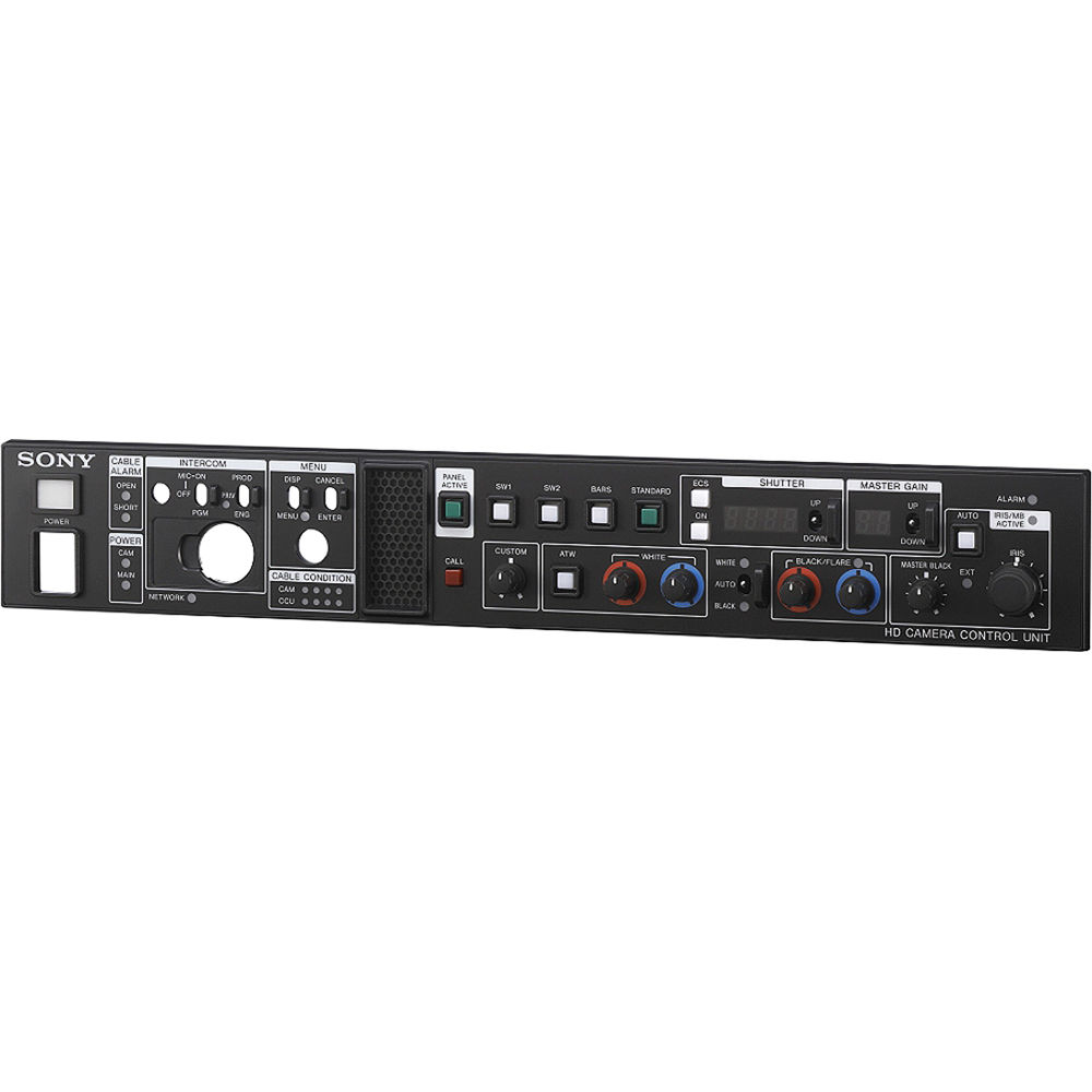 Sony's Front Control Panel for HSCU-300R/RF and HXCU-TX70 is an optional control panel that attaches to the front of Sony's HSCU-300R/RF or HXCU-TX70 Camera Control Unit (CCU). It provides direct access for controlling white and black balance, iris and master black, shutter and master gain. It includes function assignable buttons and a potentiometer.