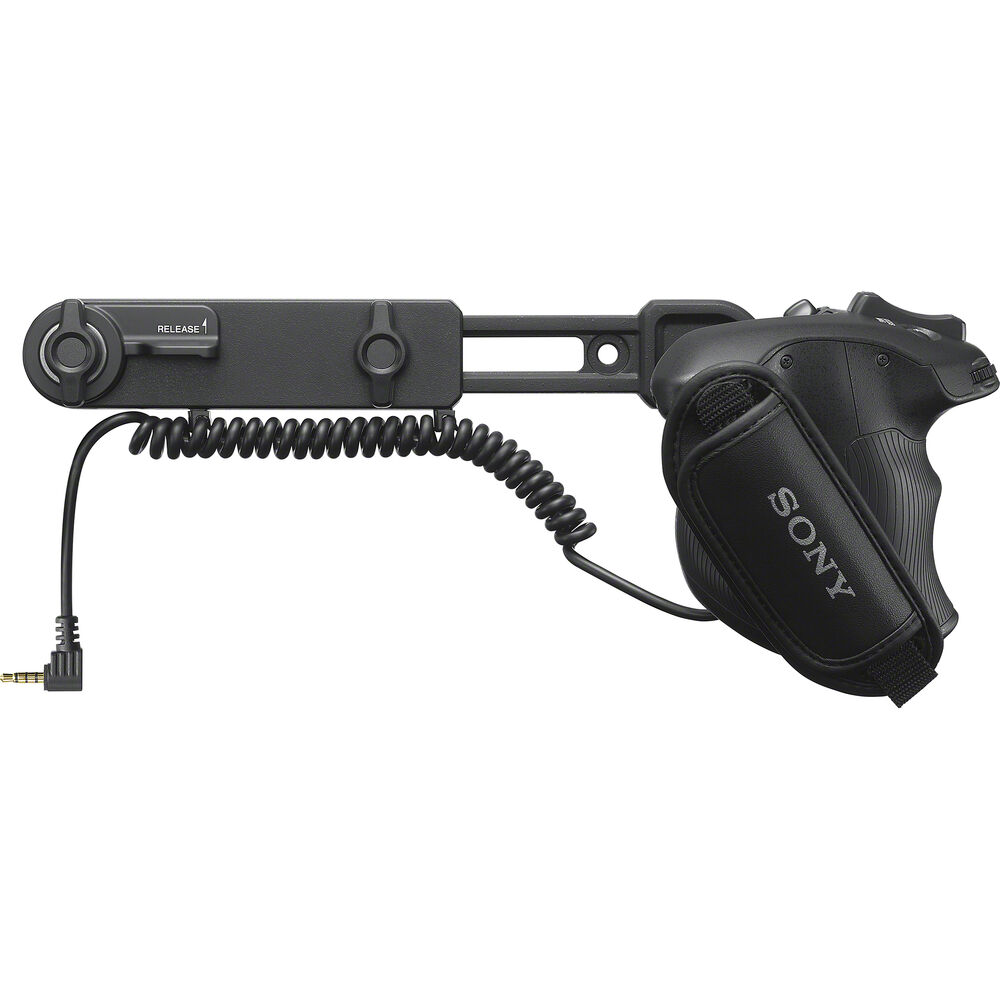 The Sony GP-VR100 Remote Control Grip provides a convenient way to both support and control your CineAlta BURANO 8K camera. This articulating handle features a LANC connector and a contoured handgrip with run/stop, zoom, and focus functions. It mounts on your camera via a rosette mount, enabling 360° rotation, and can be extended for comfortable positioning.