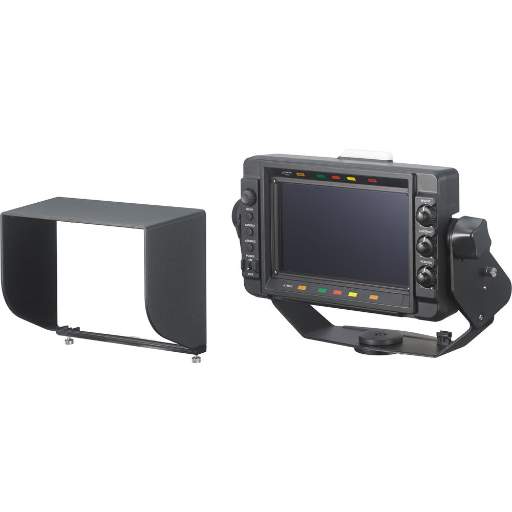 The HDVF-L750 7" LCD HD Viewfinder is compatible with the whole range of Sony studio cameras, the F65, and both XDCAM and PMW camcorders. The 1000:1 contrast, 1920 x 1080 LCD panel enables precise focusing and the waveform function provides detailed exposure control. The 3G-SDI input connector adds flexibility for viewing camera or external sources, while the two assignable switches enable custom setups. The HDVF-L750 viewfinder comes with an indoor hood, a shoe conversion bracket, a number plate, a V-wedge shoe mount, mounting screws, an Allen key, a spiral tube, and 2 camera cables.