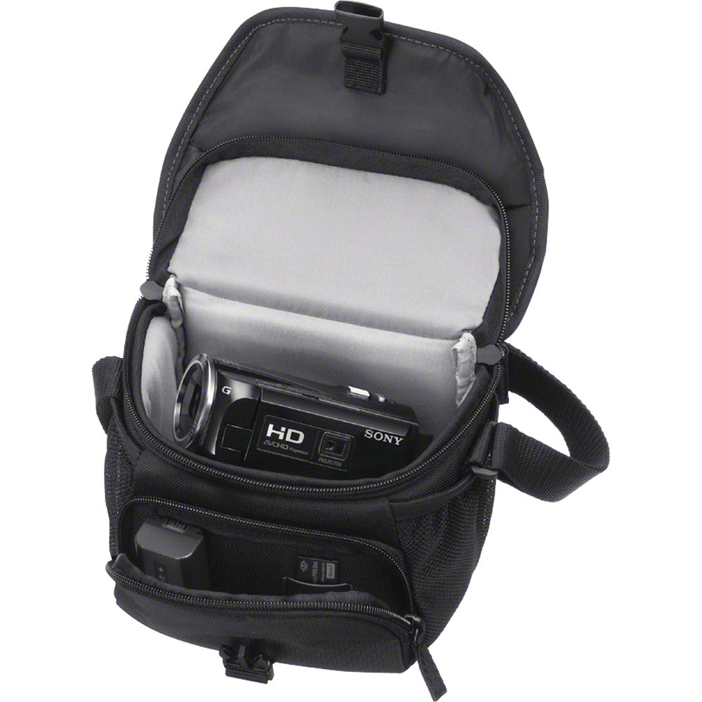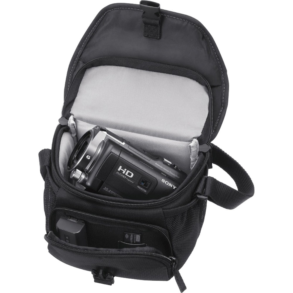 The black LCS-U11 Soft Carrying Case from Sony is a small-sized case to hold your HD camcorder, Alpha DSLR, NEX, or Cyber-shot camera. The case features a movable interior divider that will help you configure your gear to suit your need. Three exterior pouches—two on the side and one in front—are provided for storage. The front pocket has a built-in Memory Stick holder.