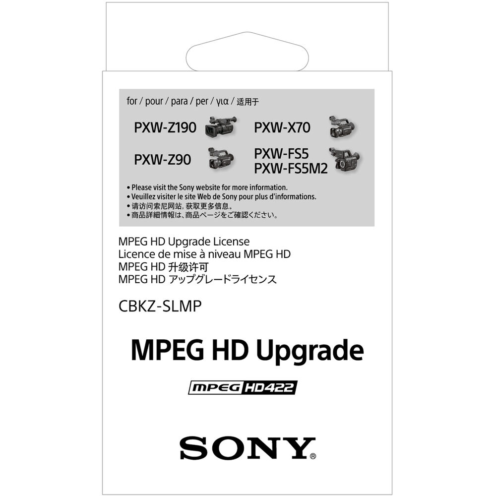 With this MPEG HD Recording Upgrade License from Sony, you can enable MPEG-format HD recording on your PXW-X70, PXW-Z90, or PXW-FS5 camcorder. MPEG video is used in many professional broadcast workflows and is compatible with most NLE software without requiring time-consuming format conversion. Depending on the application, two different bit-rates will be available for selection, 50 and 35 Mb/s. The 50 Mb/s affords 4:2:2 chroma subsampling for broadcast quality video, while the more streamlined 35 Mb/s selection offers 4:2:0 chroma subsampling.
