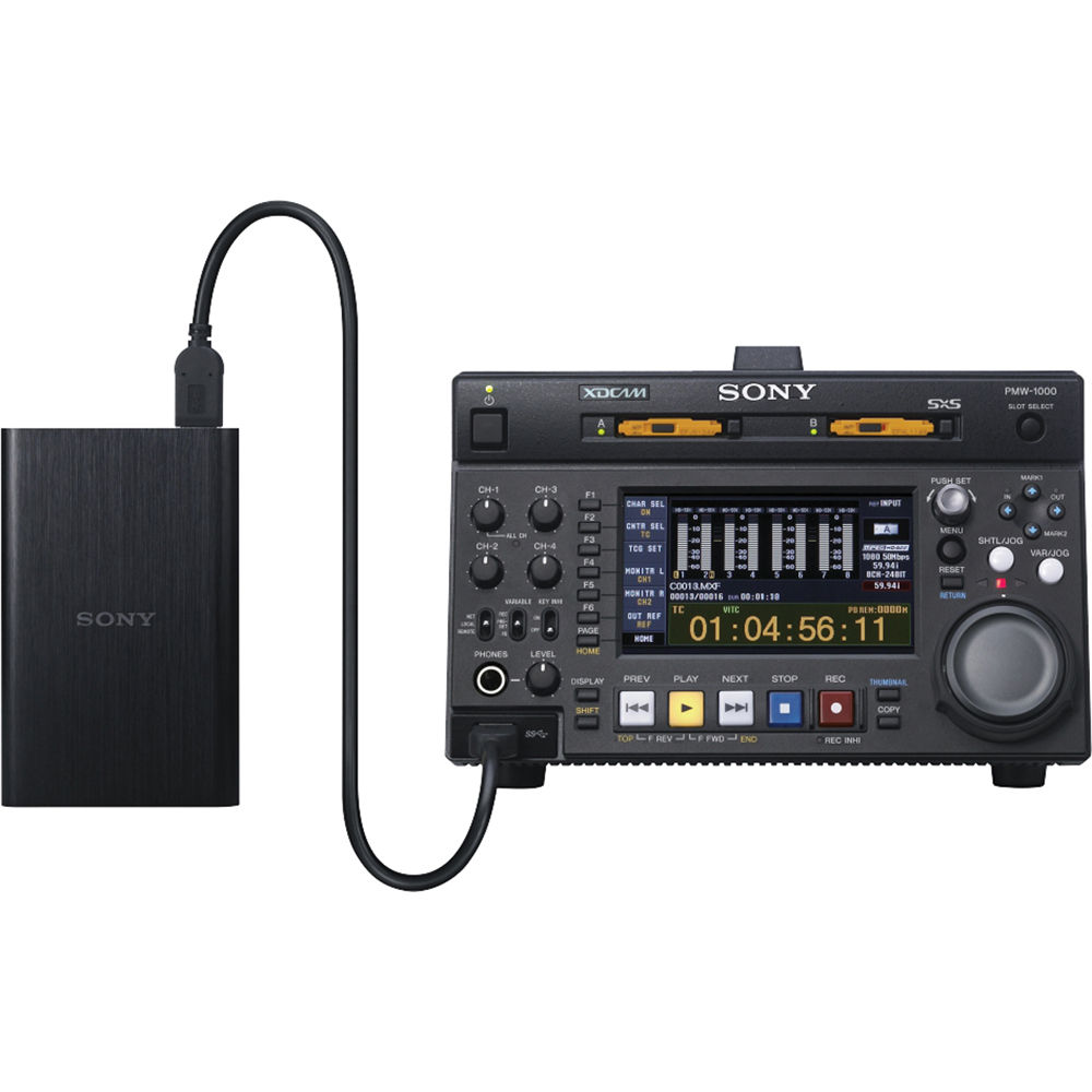 The Sony PMW-1000 XDCAM SxS Memory Recording Deck can record a wide range of XAVC and XDCAM codecs from any HD-SDI source onto SxS Cards. The PMW-1000 provides outstanding MPEG HD422 picture quality as well as an uncompromising eight-channel (HD-SDI), 24-bit audio recording capability, all packed in a compact half-rack-size deck. In addition to MPEG HD422, XAVC Intra HD Record/Playback is supported, as well as MPEG IMX and DVCAM formats in the SD domain. The RS-422 interface and Gigabit Ethernet enables the PMW-1000 to be used as a player deck for linear editing and a feeder deck for non-linear editing.