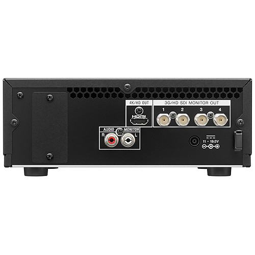 Outputs | HD/3G-SDI: 4 x BNC ( 2-Sample Interleave output, SMPTE 424, 425 (Level A/B) / SMPTE 292M standards) HDMI 4K/HD: Type A 19-pin (1), output, up to 4K 60P 4:2:0 8bit Analog Audio: RCA jack (L,R) -17dBu (Reference Level) Headphone: 1 x stereo mini jack |