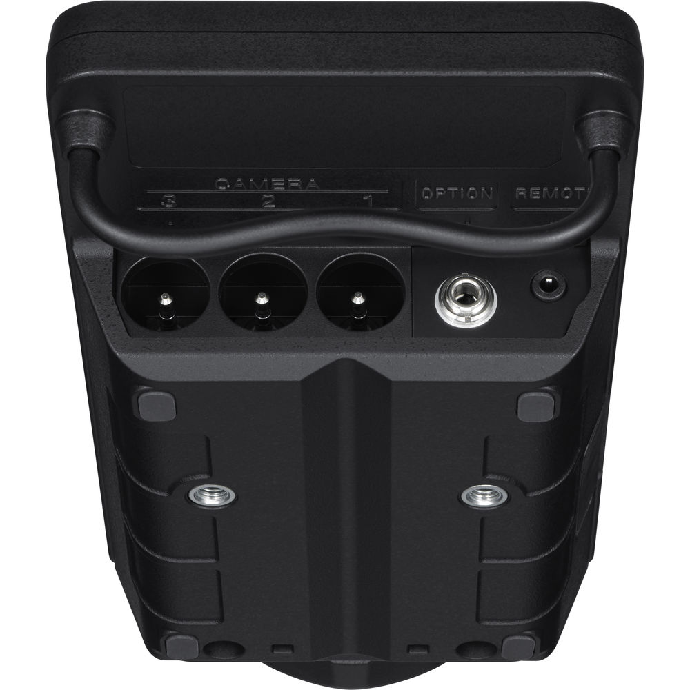 The remote incorporates an adjustment knob that can be set to control your camera's focus, iris, or electronic ND selection (if your camera features electronic ND). At the bottom of the unit is a zoom rocker with a protective bar to help prevent accidental activation. You can daisy-chain together two RM-30BP units, allowing either remote to control your camera. You can also connect the remote to a Sony MCX-500, allowing for that switcher to control up to three cameras.