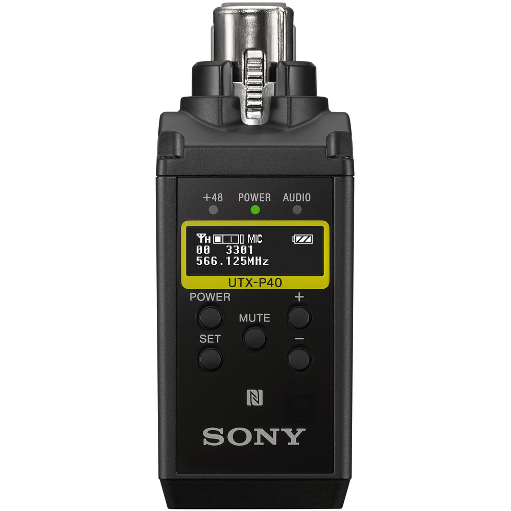 The Sony UTX-P40 is a wireless plug-on transmitter compatible with the URX-P40 camera-mount receiver. Compact and lightweight, with a robust, all-metal construction, this plug-on is well suited for tough operating conditions. It provides up to 6 hours of operation on two AA batteries, with a selectable 5/40mW RF power output and a transmission range up to 330'.