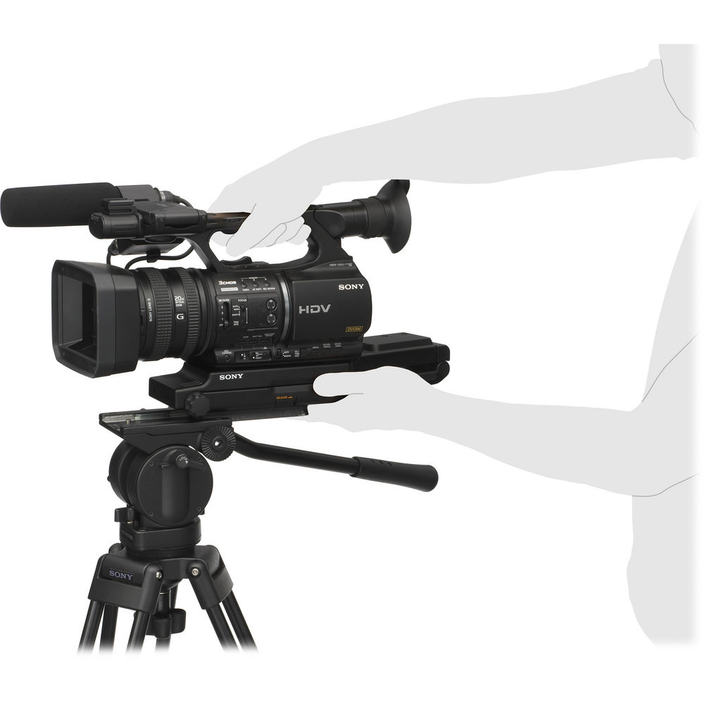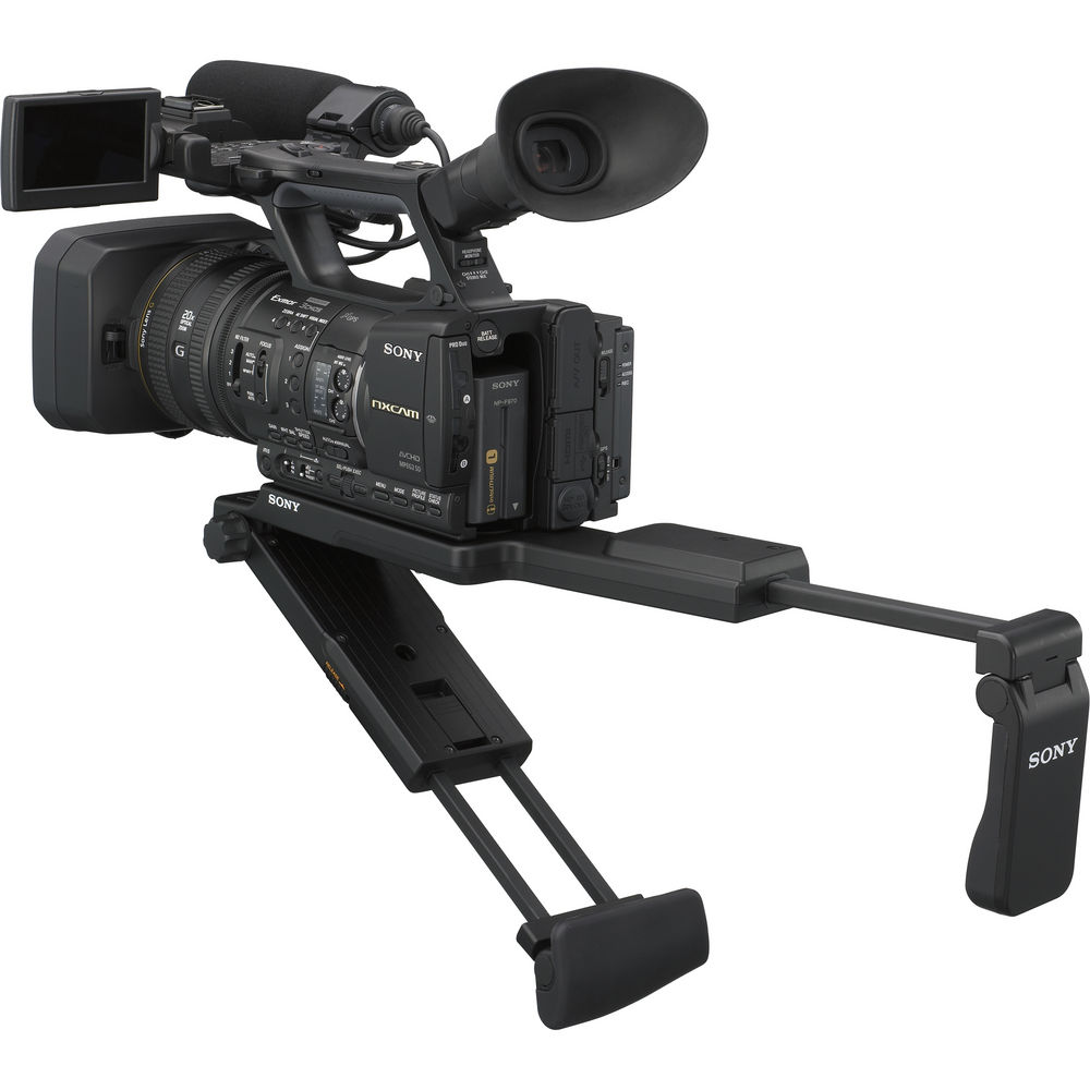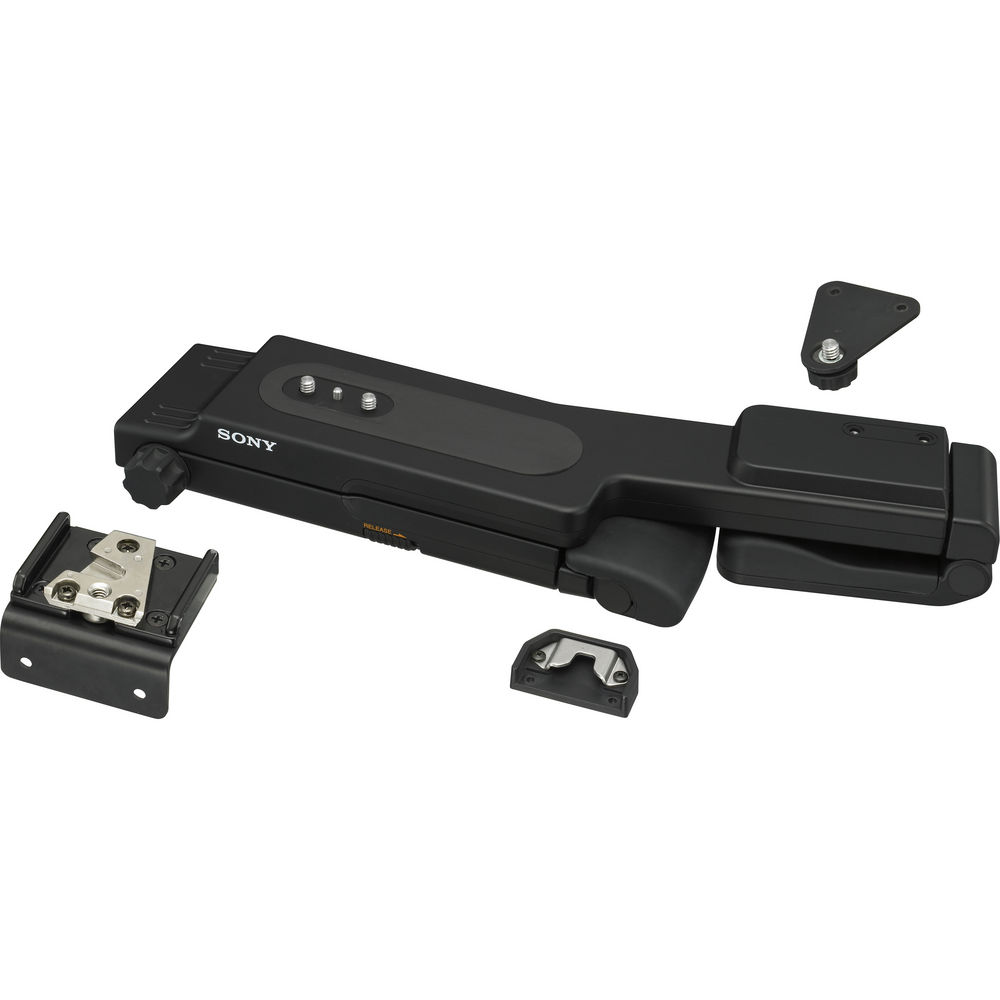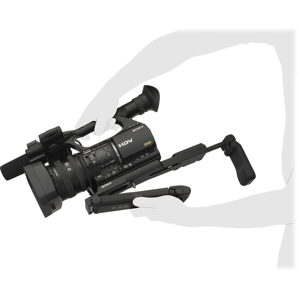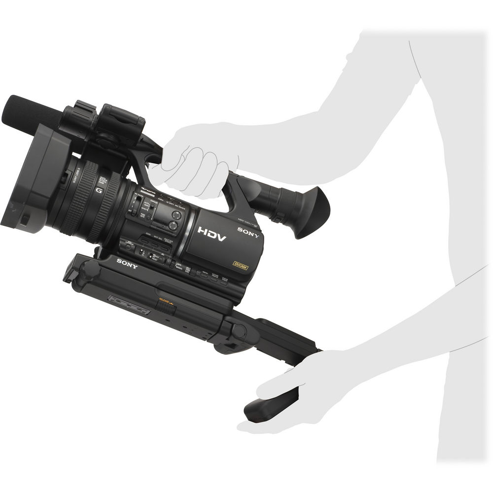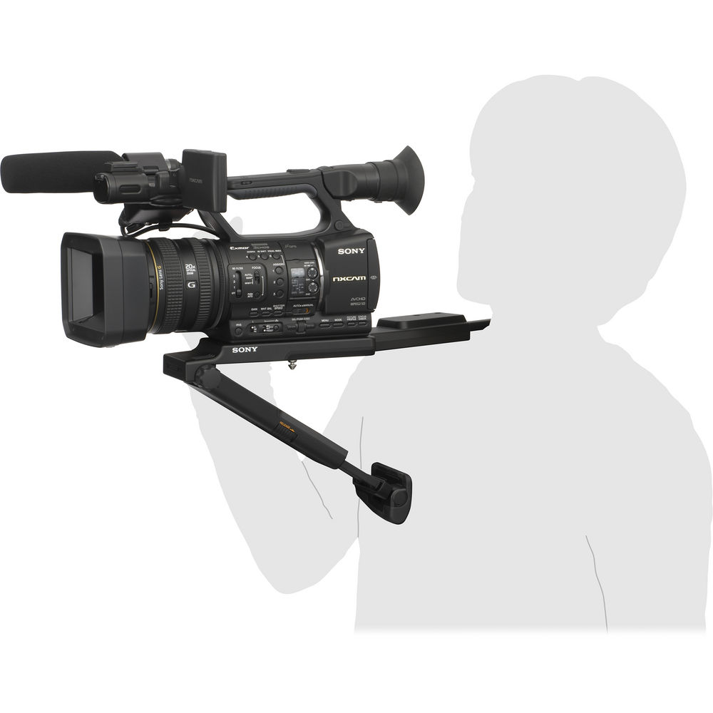 Sony's VCT-SP2BP Camcorder Shoulder Support uses a unique collapsible design to provide 3-point shoulder stabilization for just about any camcorder. Unfolded and extended, the VCT-SP2BP offers handheld camera support from hands, chest, and shoulder. Collapsed and folded down, the unit attaches easily to a tripod using the included adapters, adding a high degree of flexibility to your shoot. The adjustable shoulder and chest braces can be fit to body size and shooting preference, while the addition of a standard tripod screw lets you mount accessories, such as a battery plate or flash memory device, to the VCT-SP2BP's rear.