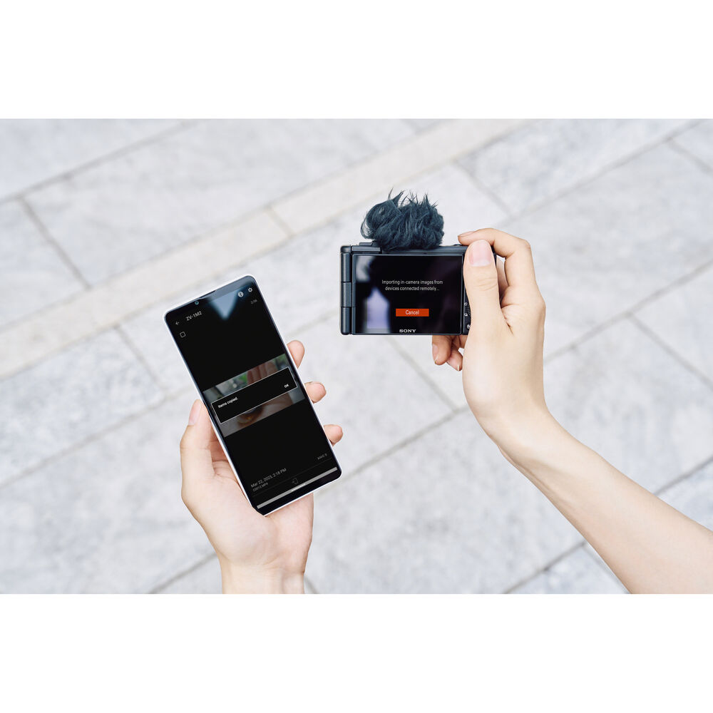 The side flip-out 3" touchscreen makes front-facing composition and operation a breeze by putting manual and automatic controls at your fingertips. The camera features a suite of automatic touch specialty functions such as Touch AE, Touch Tracking, Touch Focus, and Touch Shutter. The ZV-1 II also features Product Showcase Setting, Background Defocus function, Soft Skin Effect, and Face Priority Auto-Exposure.
