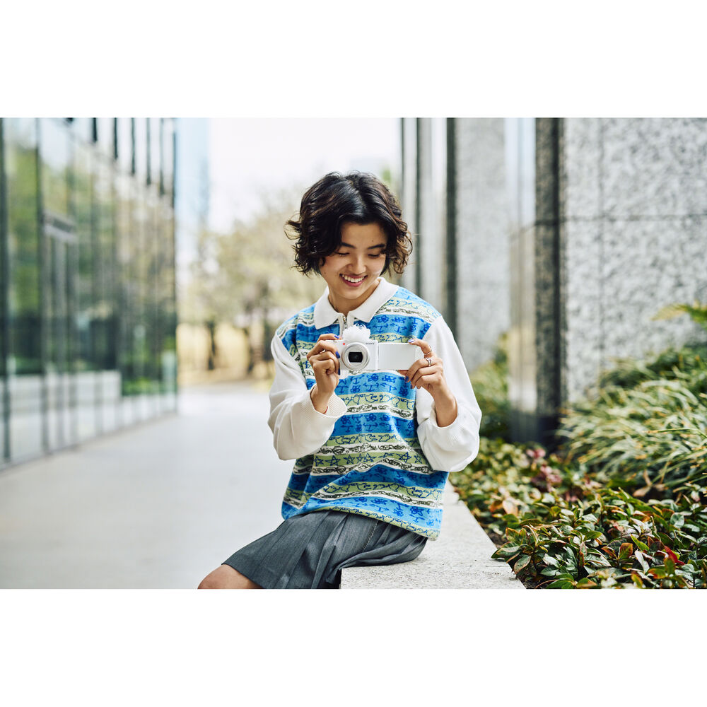 Elevated content is easier to produce with the camera's Cinematic Vlog setting, Slow & Quick shoot mode, and its intelligent built-in microphone. The Cinematic Vlog setting triggers a fixed 2.35:1 aspect ratio and 24 fps frame rate while offering a selection of "Looks" and "Moods" to refine the image aesthetic. Slow & Quick mode allows you to apply frame rate adjustments in camera , up to 5x slower and 60x faster, from a single, simple screen. The built-in, three-capsule microphone is multidirectional and, when used in auto mode, uses the camera's face- and object-recognition software to select the best direction for the microphone. A 3.5mm microphone jack and a multi-interface shoe allow compatibility with external microphones, and the camera comes with a windscreen to ensure clear sound when you're shooting outdoors.