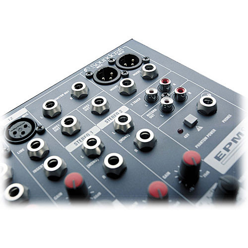 The EQ section features a sweepable mid-range on all mono channels and provides smooth frequency contouring. Inserts on all mono channels and stereo output enable signal routing to external signal processors. The compact profile, rich sound quality and flexibility of the EPM Series provides everything necessary for use in project recording, video editing, night clubs, bars, meeting halls, houses-of-worship, and more.