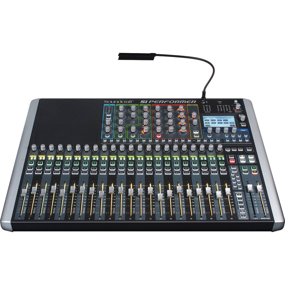 The Soundcraft Si Performer 2 Digital Live Console is designed as a live sound reinforcement system for houses of worship, music venues, musicians, bands, theaters, touring companies, corporate events, and more. It is especially useful for applications wherein one operator will control both the sound and the lighting for a performance because of its integrated DMX controller and support for Soundcraft's ViSi Remote App for Apple iPad.