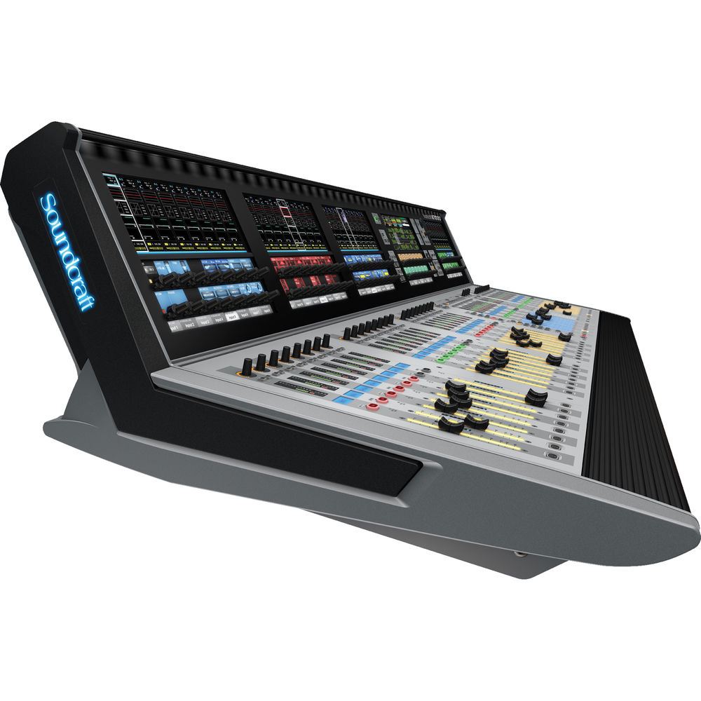 The console's intuitive workflow provides sound engineers with direct access to all functions, maximum information, and visibility at all times as well as a unique integration of touchscreens and encoders, eliminating complex and fatiguing mental mapping and a compact operating surface with a perfectly optimized control density. FaderGlow illuminated faders display different colors according to function. Five Vistonics II touch screen interfaces and sleek 3D graphics make it possible for two engineers to use the console at the same time. Users also have the ability to store/recall snapshots and cues and can control the console remotely from an iPad via the Soundcraft ViSi app.