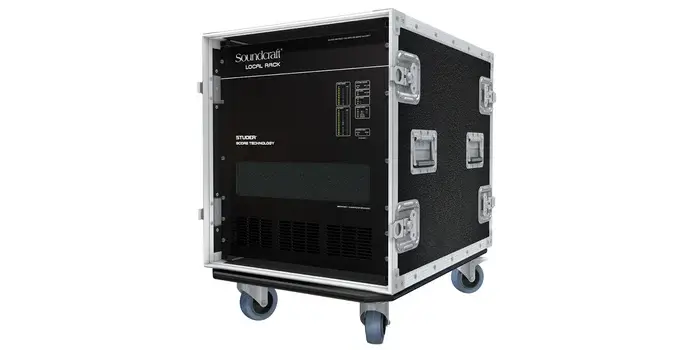 The Soundcraft ViLR-48C5 is a specialized Cat5 local rack designed to seamlessly integrate with the Vi5000 and Vi7000 digital mixing consoles. This 48kHz system consists of a comprehensive 6U processing and I/O unit named SCore, developed by Studer, coupled with a 3U low-noise cooling fan unit to maintain optimal operating temperatures. Ideal for professional live sound environments, this local rack enhances your console's performance by providing additional I/O capabilities and ensuring stable, reliable operation.