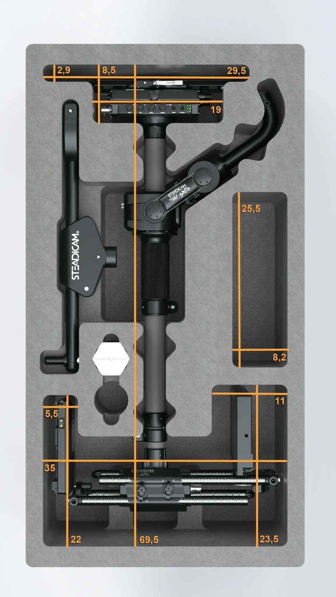 New 3-Axis electronically assisted camera stabilizer incorporating the patented Steadicam Volt technology, augmented with a third pan motor for even more precise camera control. 3-axis assisted stabilization allows the operator to directly control the framing of the shot without feeling disconnected from the camera like in other fly by wire systems. Shallow learning curve for achieving high quality camera movement, with faster set up times and greater range of movement over current electronic gimbal systems. With a payload capacity of up to 20 lbs (9kg) when paired with a Steadicam A-30 Arm & Vest, the Steadicam Axis will take you to a new level of achieving cinema quality shots at an affordable price.