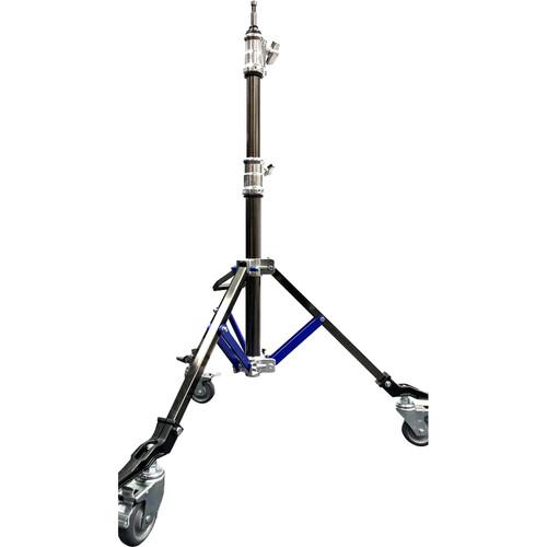 The Heavy-Duty Balancing Stand with 5/8" Baby Pin from Steadicam is a versatile, height-adjustable, three-section stand with a steel leg and riser, a wide 3.18' footprint, and boasting a branded Steadicam carry handle. The sturdy metal construction is augmented with painted gloss gunmetal and blue anodized supports, and the unit has a maximum working height of 6' and a minimum working height of 3.18'.