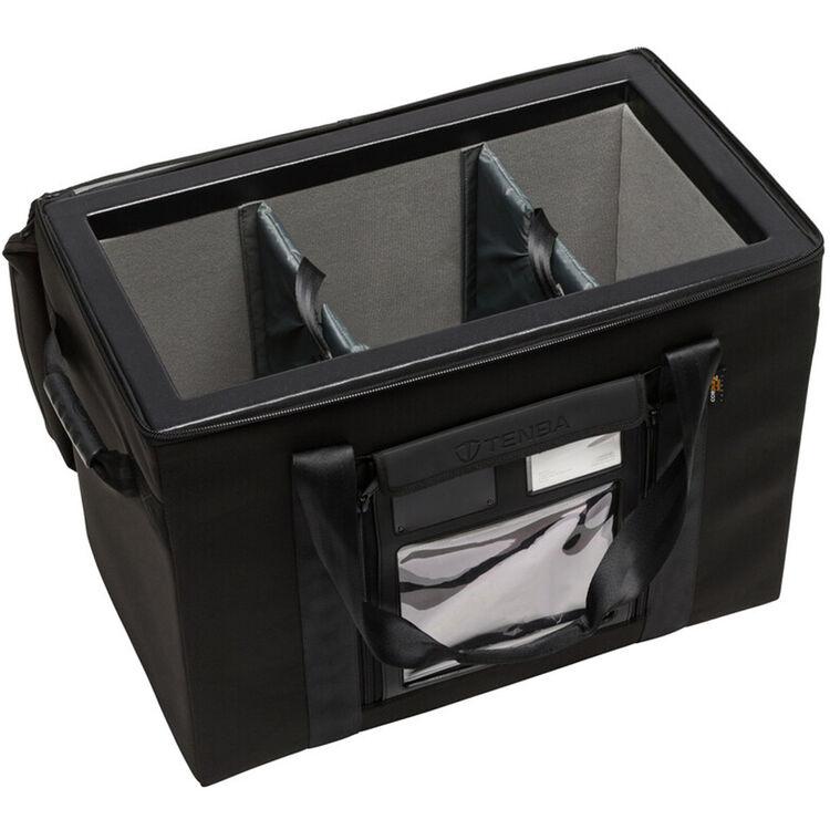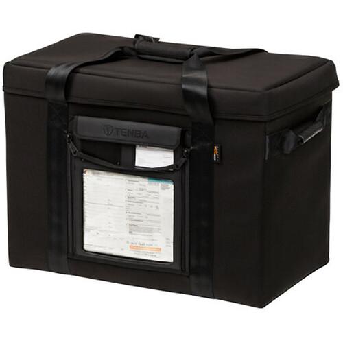 The Tenba AT-45V 4x5 View Top Load Air Case is a top loading air shippable case that holds a 4x5" monorail camera with film holders and backs or a large lighting power pack with 2 or 3 heads. This case uses the Tenba Datapanel Shipping & Identification systemIt includes two movable dividers and a retaining strap to lock down the equipment. The case is made of lightweight air channel plastic laminated on high impact resistant closed cell foam. This rigid shock proof box is covered with a soft nylon fabric shell. The outer shell is made of water repellent, puncture resistant, Protek ballistic nylon. There are two overlapping carrying handles with a leather grip and two side lifting handles to aid in carrying the case.