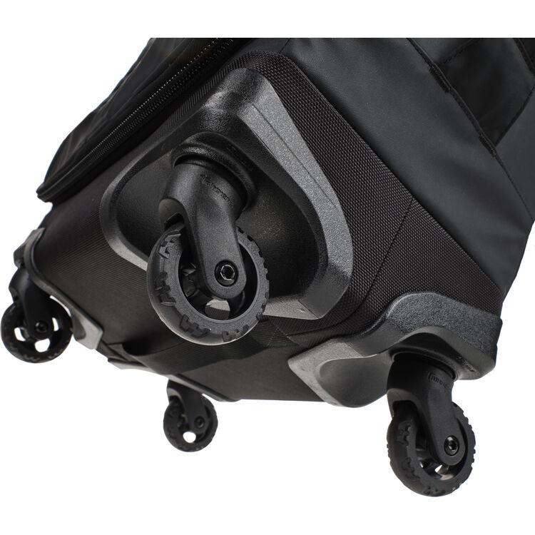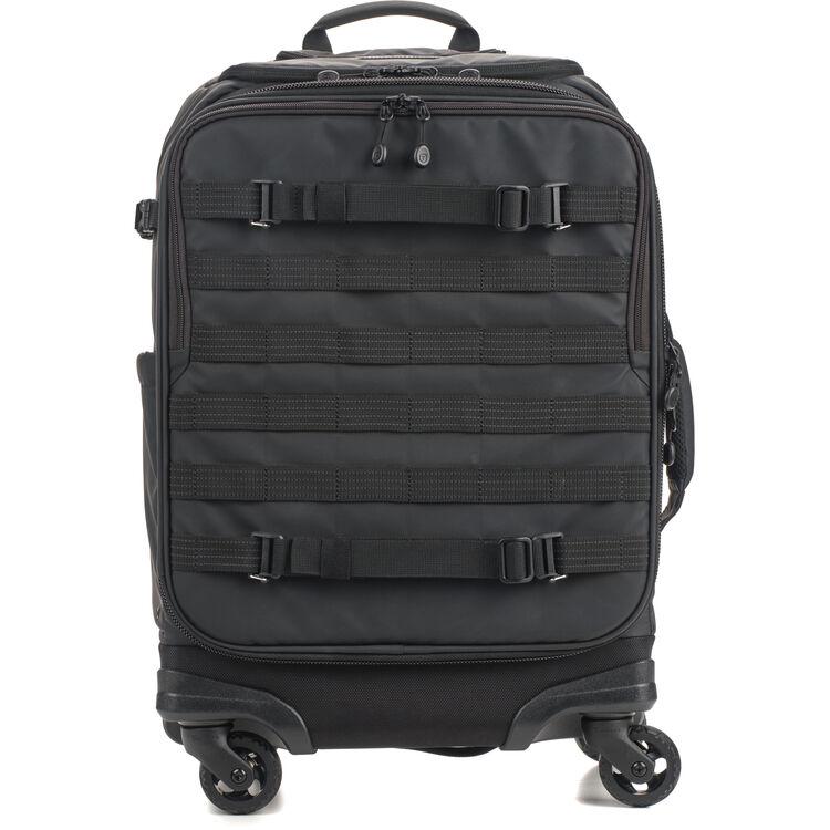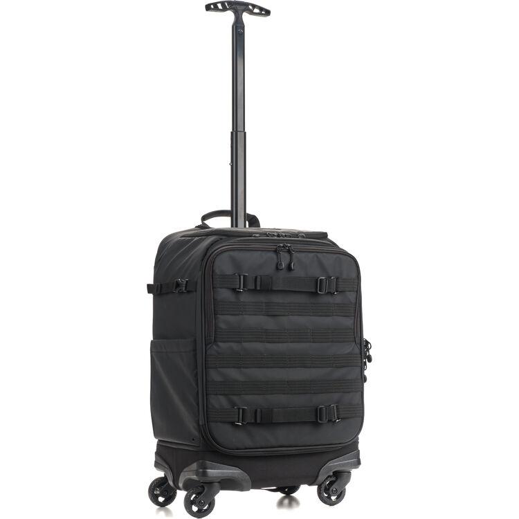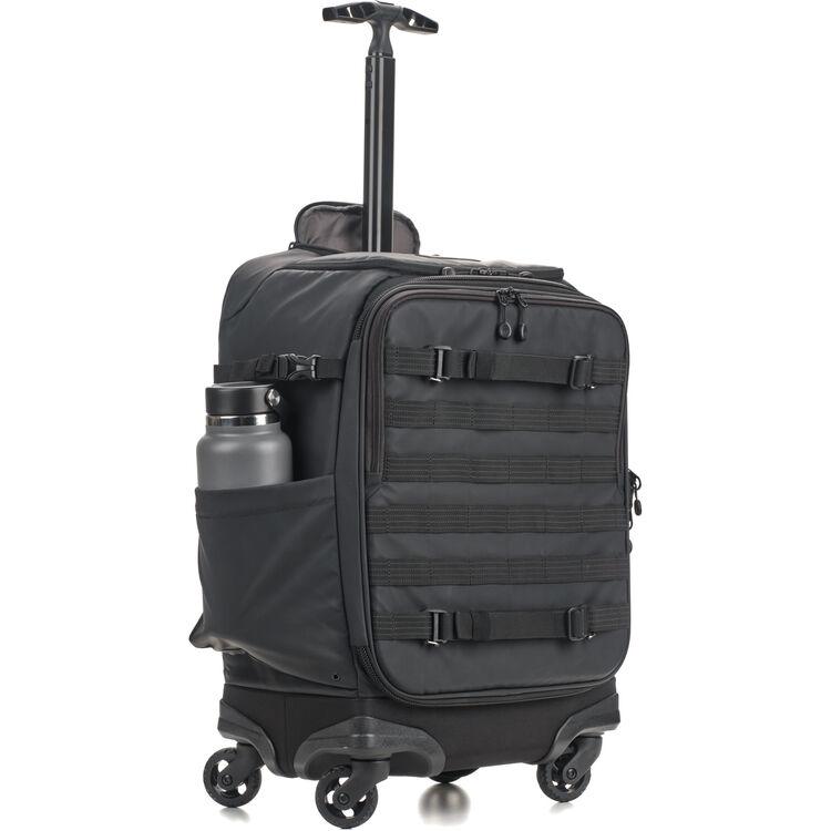 The Axis V2 Spinner Backpack from Tenba is a versatile bag that offers both smooth, convenient rolling through streets and airports, plus quick, comfortable backpack carrying when needed. The spacious 28L capacity features a set of interior dividers with padded protection for two DSLR or mirrorless cameras and up to seven lenses. Built around a lightweight aluminum frame, it provides the durability of luggage with the convenience of a backpack. It accommodates long lenses up to 200-600mm or 400mm 2.8, and they can be quickly accessed through the top door. The reinforced exterior side pocket stores a gimbal, tripod, or water bottle. The tactical MOLLE panel allows you to attach gear to the exterior of the pack for fast and easy access during a shoot. The Axis V2 meets most airline carry-on regulations, but you should check with your carrier prior to travel.