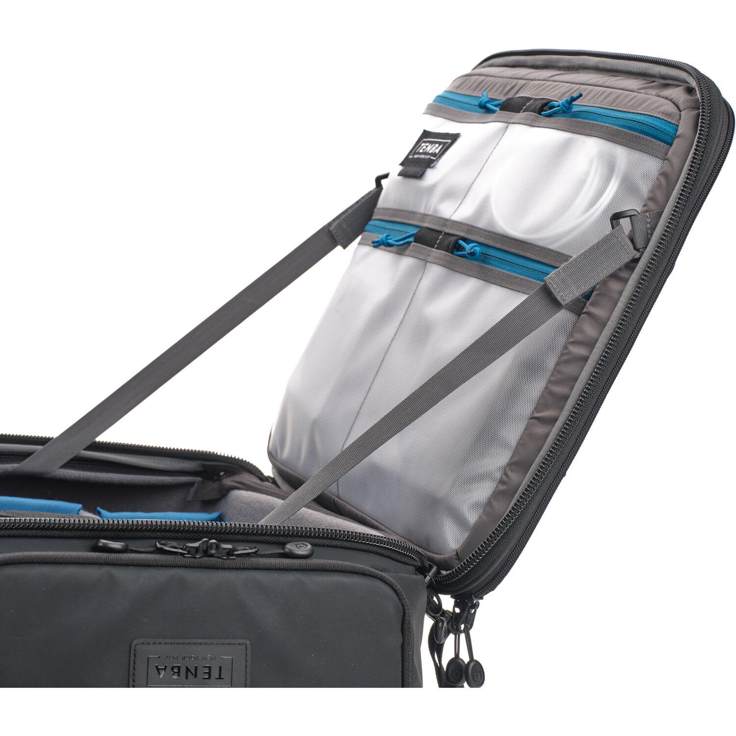 The Axis V2 Spinner Backpack from Tenba is a versatile bag that offers both smooth, convenient rolling through streets and airports, plus quick, comfortable backpack carrying when needed. The spacious 28L capacity features a set of interior dividers with padded protection for two DSLR or mirrorless cameras and up to seven lenses. Built around a lightweight aluminum frame, it provides the durability of luggage with the convenience of a backpack. It accommodates long lenses up to 200-600mm or 400mm 2.8, and they can be quickly accessed through the top door. The reinforced exterior side pocket stores a gimbal, tripod, or water bottle. The tactical MOLLE panel allows you to attach gear to the exterior of the pack for fast and easy access during a shoot. The Axis V2 meets most airline carry-on regulations, but you should check with your carrier prior to travel.