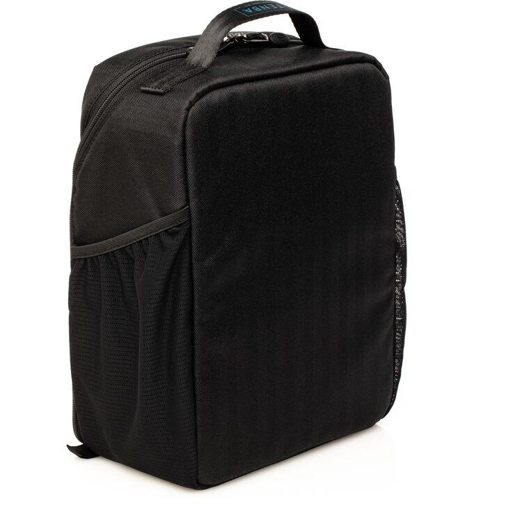 Get extra use out of your backpack, handbag, or duffel with the versatile, black Tenba BYOB 10 DSLR Backpack Insert. The BYOB, or Bring Your Own Bag, is designed to fit into a larger bag and comes outfitted with a touch-fastening divider for organizing a mirrorless or standard DSLR camera with an attached lens up to 70-200 f/2.8, plus two or three additional lenses and accessories. It has a vertical orientation and a wide top-access, zippered opening that makes it especially easy to use in backpacks, totes, and other tall bags. Accessories can be stored in the clear-mesh, zippered pocket under the lid, and you can carry a water bottle or tabletop tripod in the dual stretch side pockets.