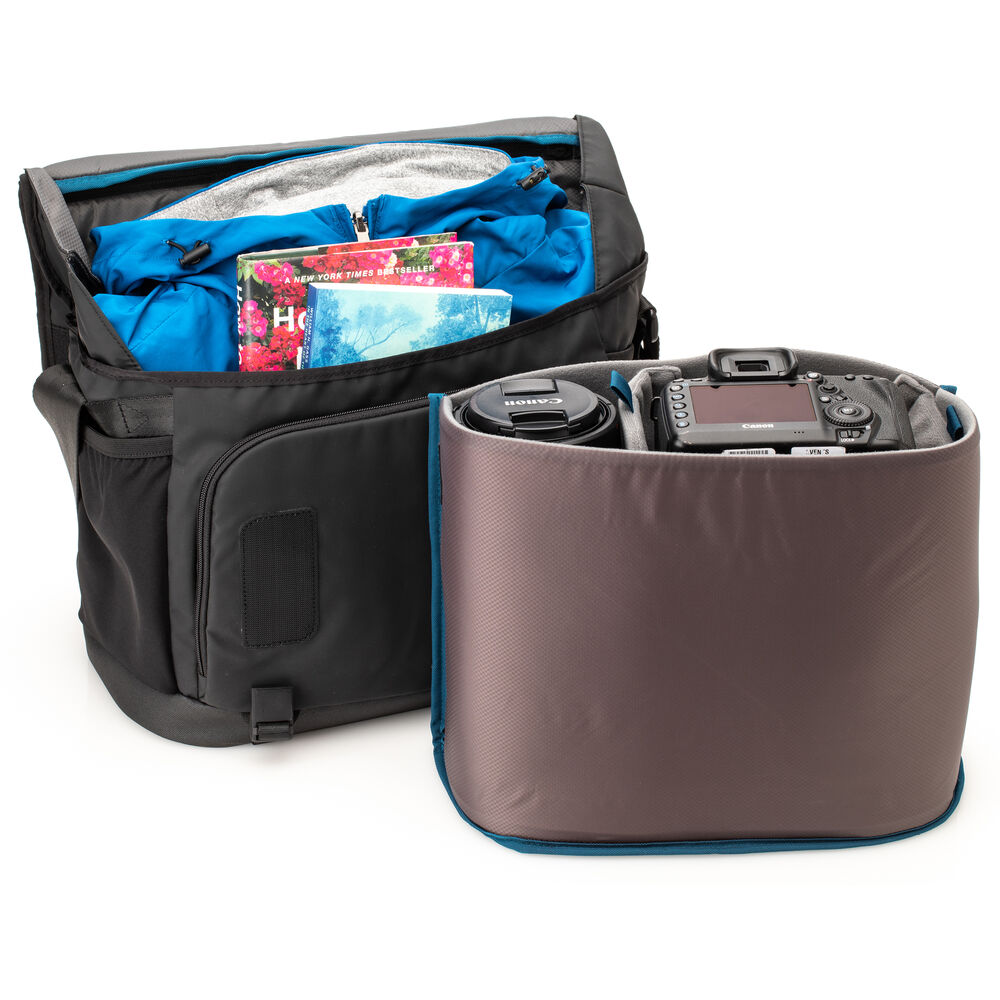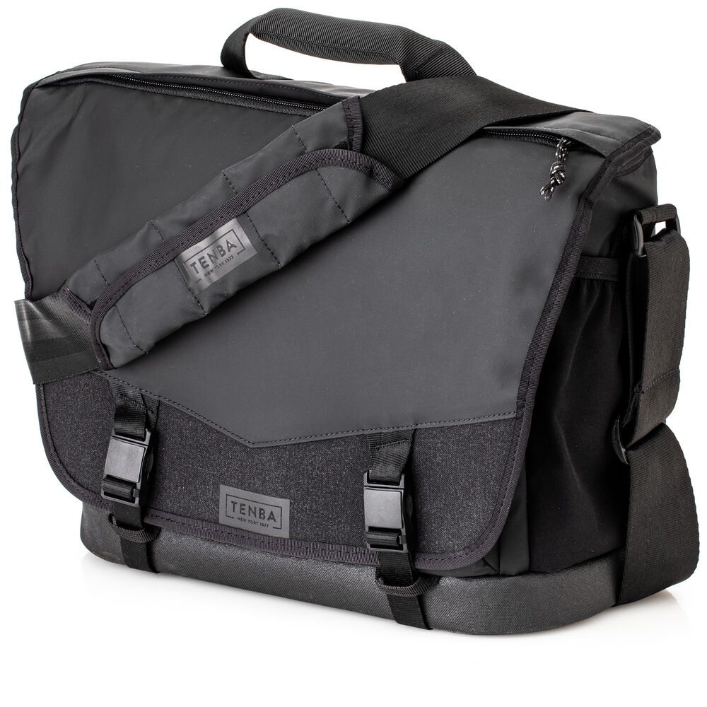 Built for seamless transitions between photojournalism and sports photography, urban exploration and adventure travel, and all kinds of social events with or without a camera, the black Tenba DNA 13 DSLR Camera Messenger Bag can hold a camera with a 70-200mm 2.8 lens attached, three to five additional lenses, a flash, accessories, personal gear, a laptop, and a tablet. The camera and lenses fit inside a padded insert in the main compartment that can be removed to allow its use as a conventional bag. Thoughtful design features and proprietary hardware make this bag easy to use and durable against the elements.