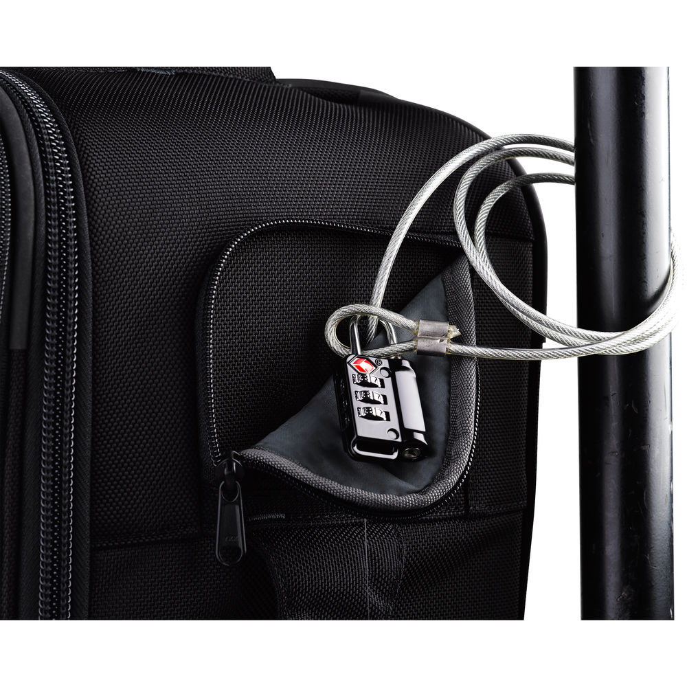 For peace-of-mind in crowded settings, a built-in TSA-approved combination lock secures the main compartment zipper. To chain the case to an immovable object such as a pole, an integrated, braided-steel side cable is included along with an additional TSA-approved combination lock.