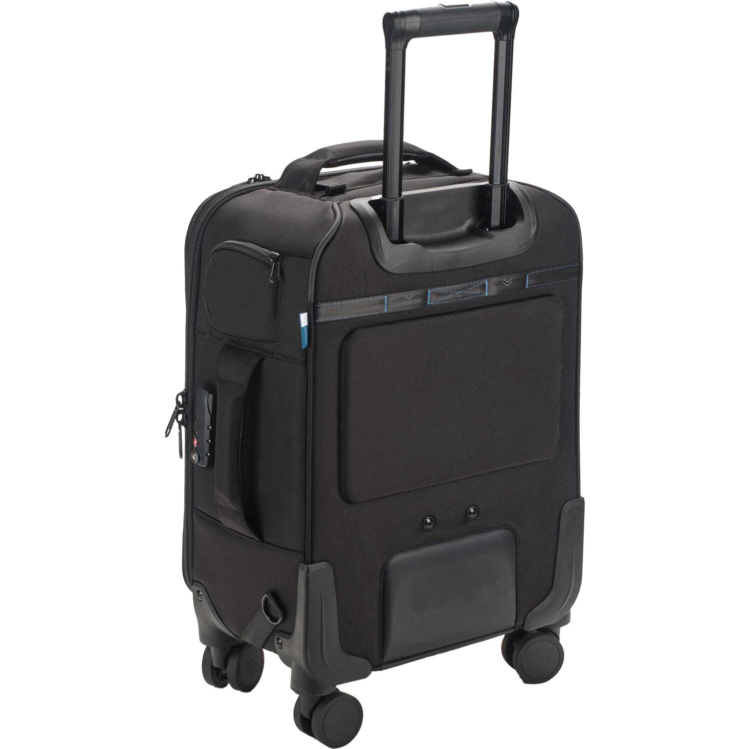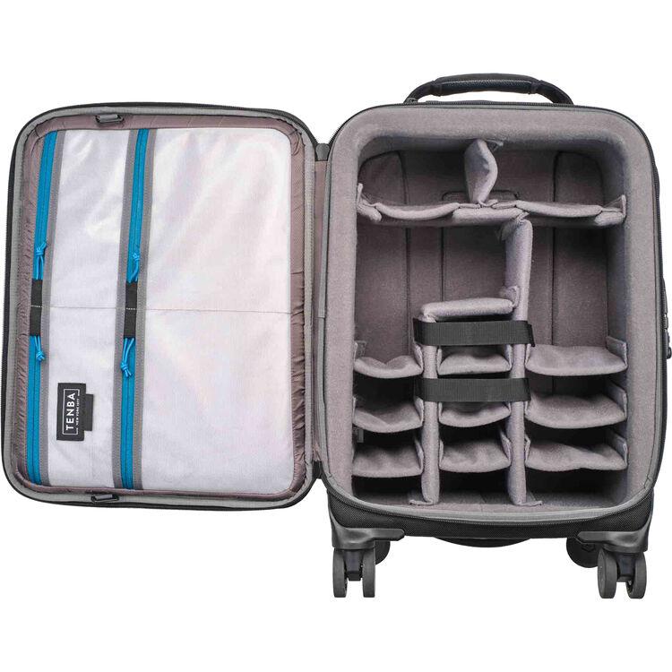 The Roadie v2 Spinner 21 Air Case from Tenba makes travel easy and stress-free for photographers, filmmakers, and content creators. It accommodates up to three mirrorless, DSLR, or cine cameras, ten lenses up to 600mm, a 16" laptop, and a portable lighting system. The durable, water-repellant 1680D ballistic nylon exterior, YKK zippers, and stress point reinforcements ensure your equipment is protected. Built to be resilient, the case frame has a polypropylene shell that withstands up to 500 lb of force. This Air Case includes a checkable laptop protection board that slips in the pocket in place of a laptop, converting the case to a unit that can be checked for air travel or shipped with confidence. The Roadie v2 Spinner 21 Air Case meets strict international carry-on regulations.