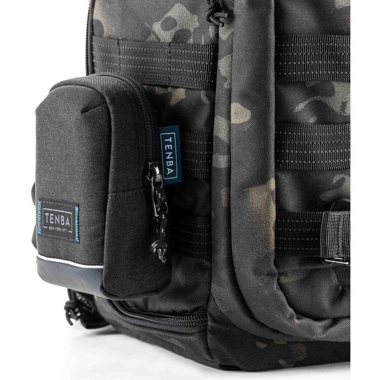 The gray Skyline V2 Pouch 3 from Tenba is designed to protect a large-sensor impact camera like the Sony RX-100 series or the Canon PowerShot G7 X Mark III during transport and storage. This pouch is compatible with military-standard MOLLE straps and has a rear loop that you can attach to your belt. The MOLLE straps attach the pouch to a Tenba Axis backpack or similar bag. This pouch also comes with a shoulder strap.