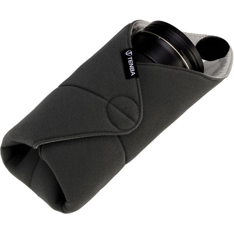 Photographers searching for a quick and easy way of organizing and protecting gear will appreciate the 12", black Tenba Tools Protective Lens Wrap. Lens wraps are available in a variety of sizes and colors. The colors, along with clear windows make it easy to identify contents. Wraps have smooth interior linings, are constructed from water-repellent, silicone-coated, ripstop nylon. The versatile design allows wraps to be rolled, folded, or wrapped into many form-fitted configurations.