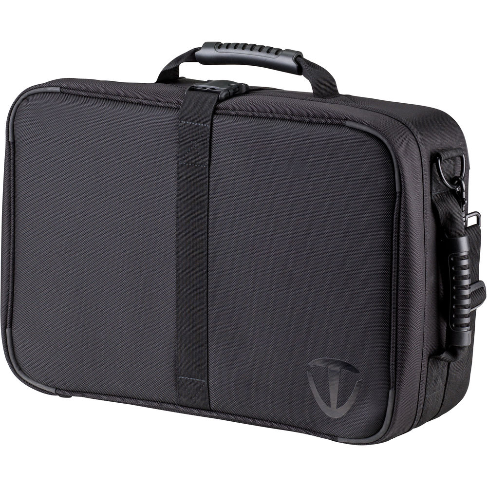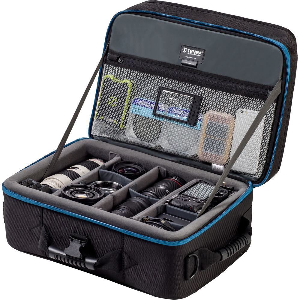 Carry the case with the three soft-rubber grip handles, or piggyback on your rolling luggage with the rear trolley strap. Knowing how hard life can be on a photographer's gear, Tenba has designed the case to withstand a stacked load of up to 400 pounds. The front of the case has a clear I.D. window for your business card. Strength and durability are ensured by the 1680D ballistic nylon construction, YKK zippers, welded steel D-rings, ABS molded rim, air-channeled polypropylene walls, high-density EVA foam, and more.